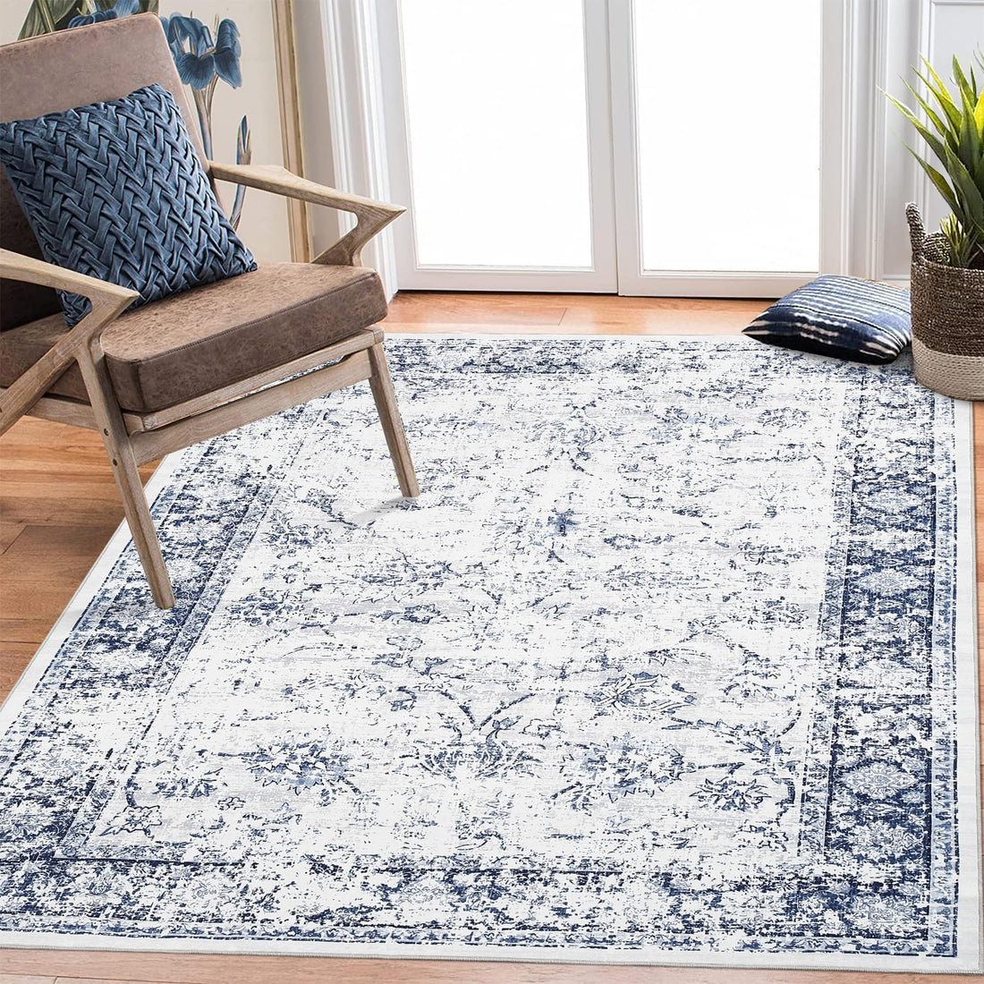 Garvee 6x9 Modern Abstract Washable Rug, Distressed Soft Non Shedding Carpet, Non Slip Low Pile Area Rug for Living Room Bedroom, Blue