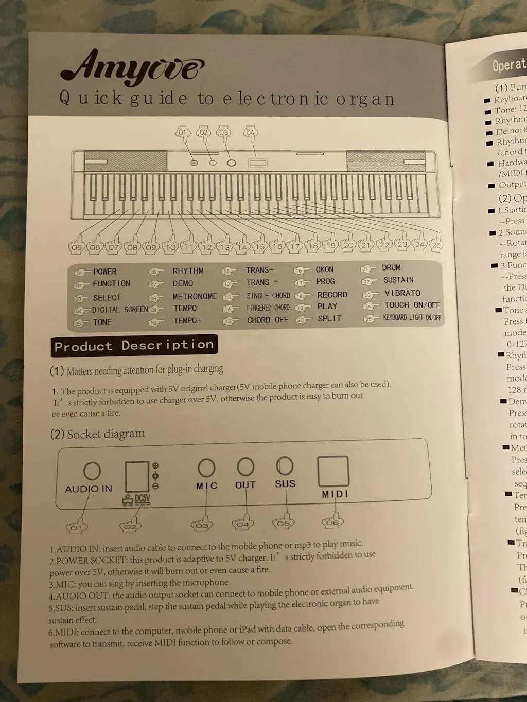 - Includes power supply, modulation pedal, and music stand