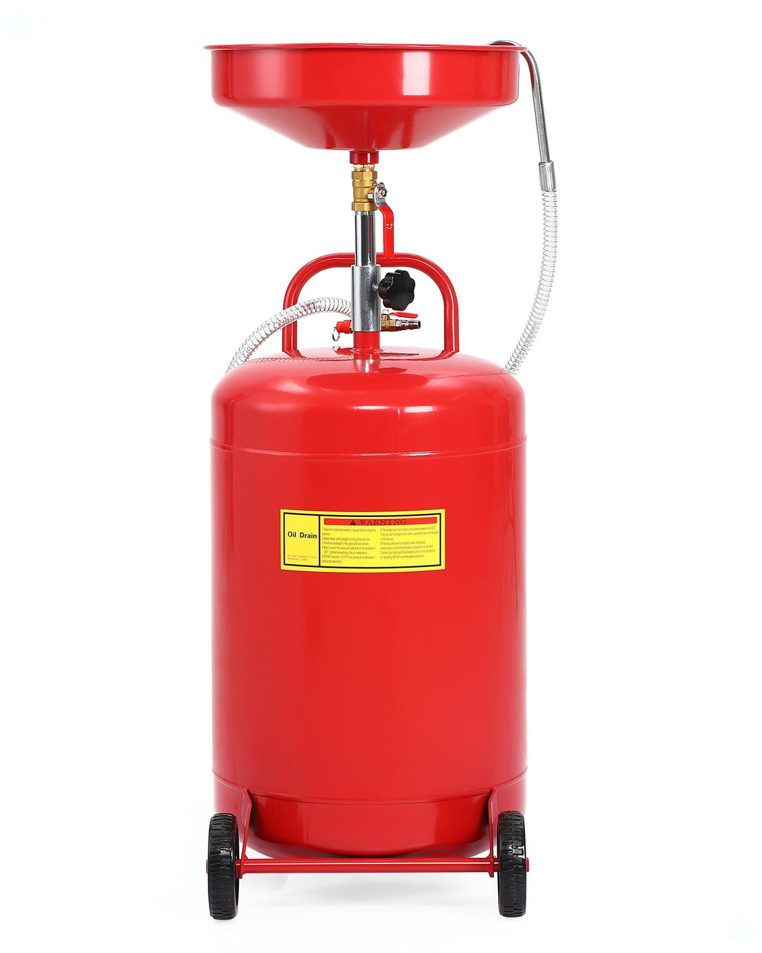 Garvee 20 Gallon Oil Drain Tank with Adjustable Funnel, Portable Air-Operated Container, Rust-Proof, Wheels & Toolbox, Red