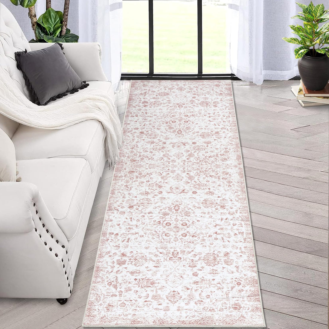 Garvee Oriental Medallion Runner Rug: Non-Slip Washable Vintage Floral Carpet for Bedroom/Living Room. Low-Pile Stain-Resistant