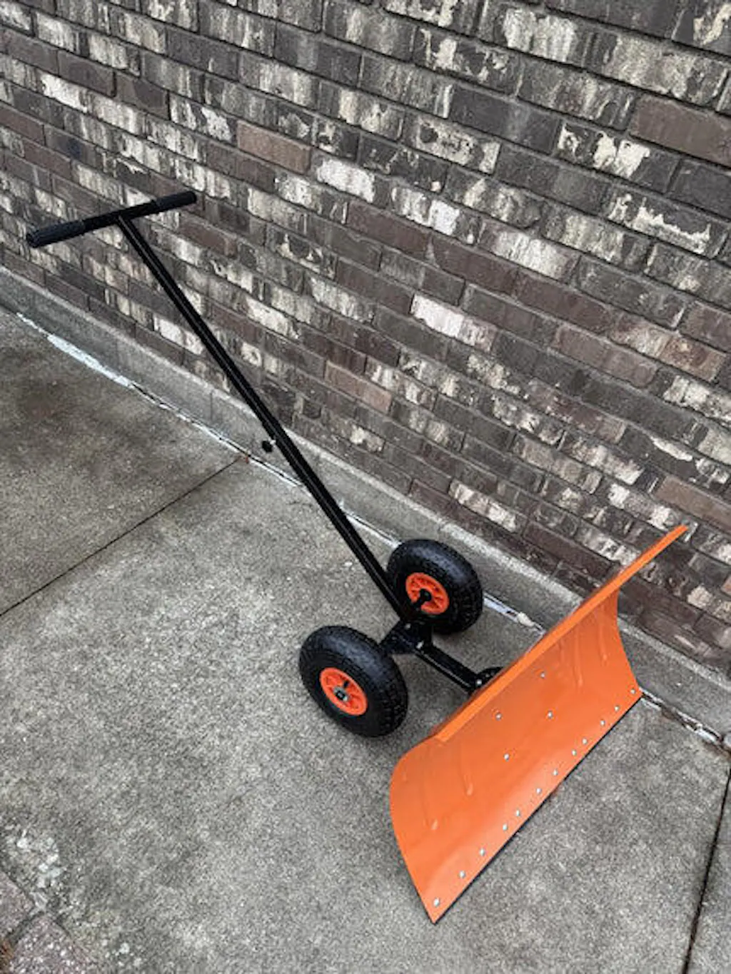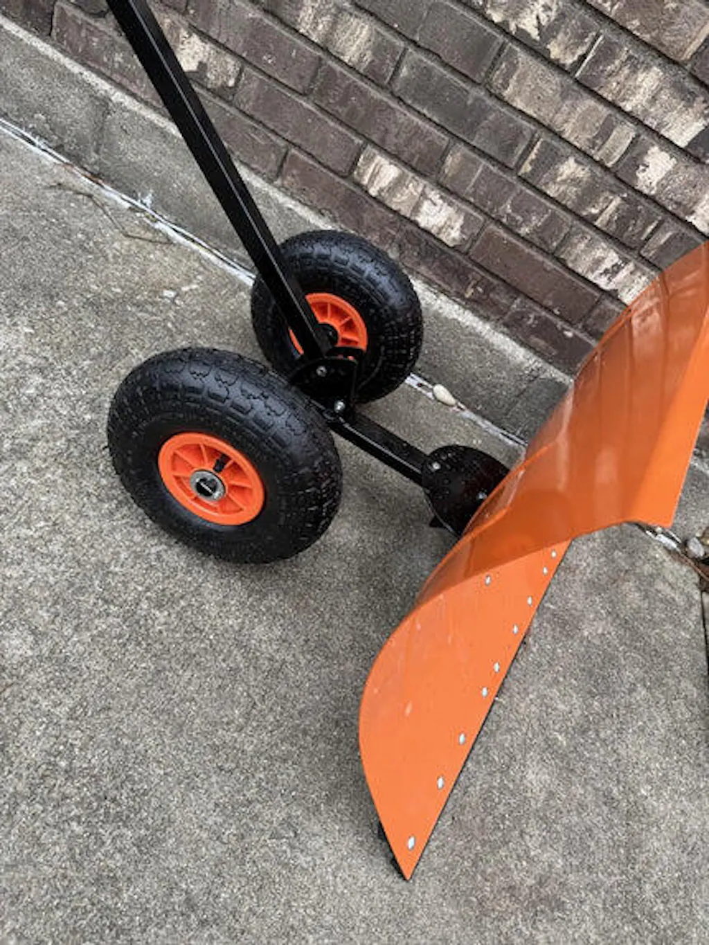 This is a big, manual push plow. This has real inflatable rubber tires. The 20 inch metal plow is solid and looks well constructed. Putting this together is a bit of a project, it took me about an hour to put together. I suggest using a 10 mm socket wrench, as that will make building it easier. The instructions are limited, but passable. I got this with the single bar, not the dual bar variant. The single bar seems adequate for the type of snow plowing this is best suited for. You can adjust this to be angled, or you can have it going straight. I used this to clear a coating of sleet and snow, it worked well for this. This takes up a lot of space when it's built. It's a solid value.