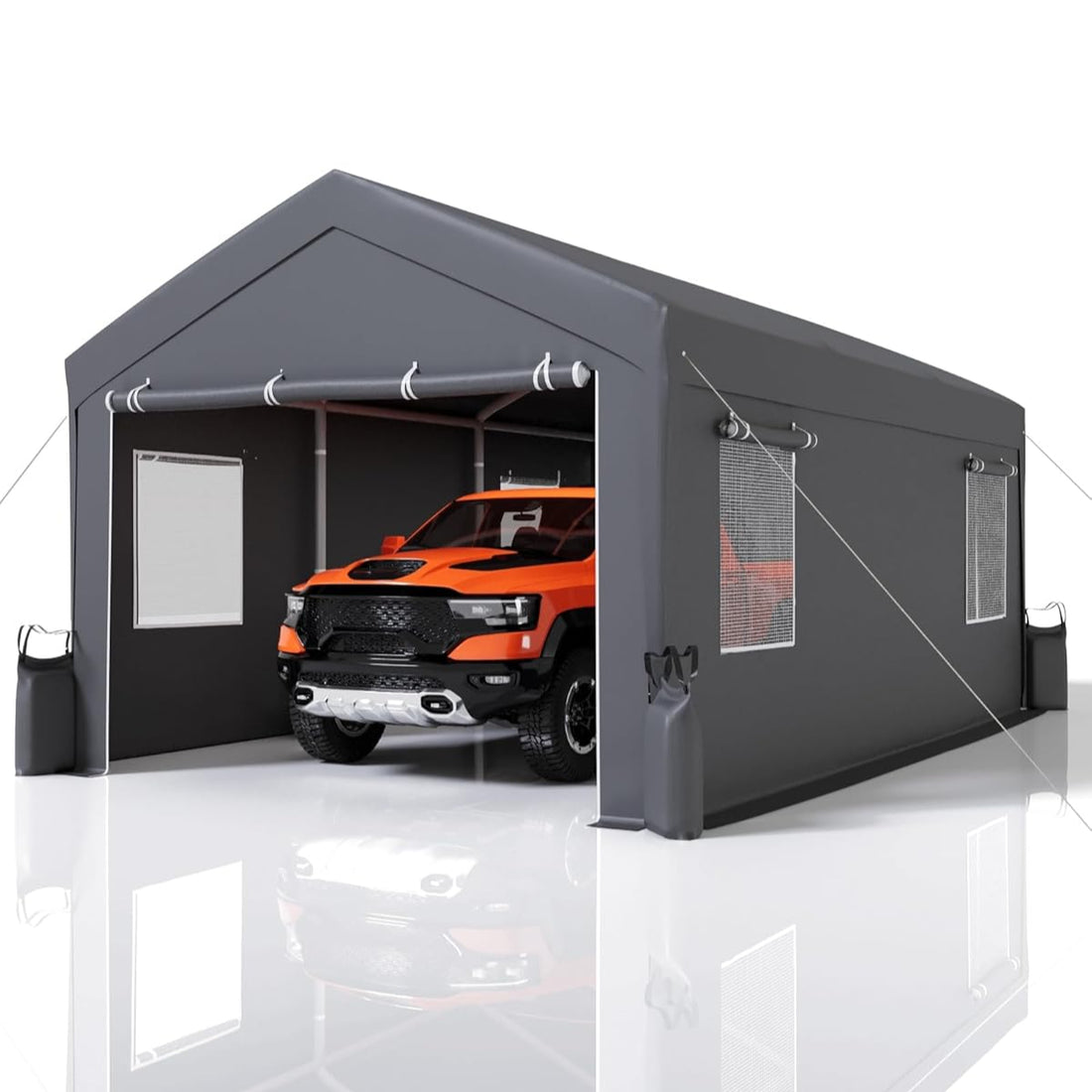 Garvee 13'x20' Heavy-Duty Portable Garage - Rust-Resistant Steel Frame, Roll-Up Doors & Windows for Ventilation, Multi-Use Shelter for Vehicles & Parties