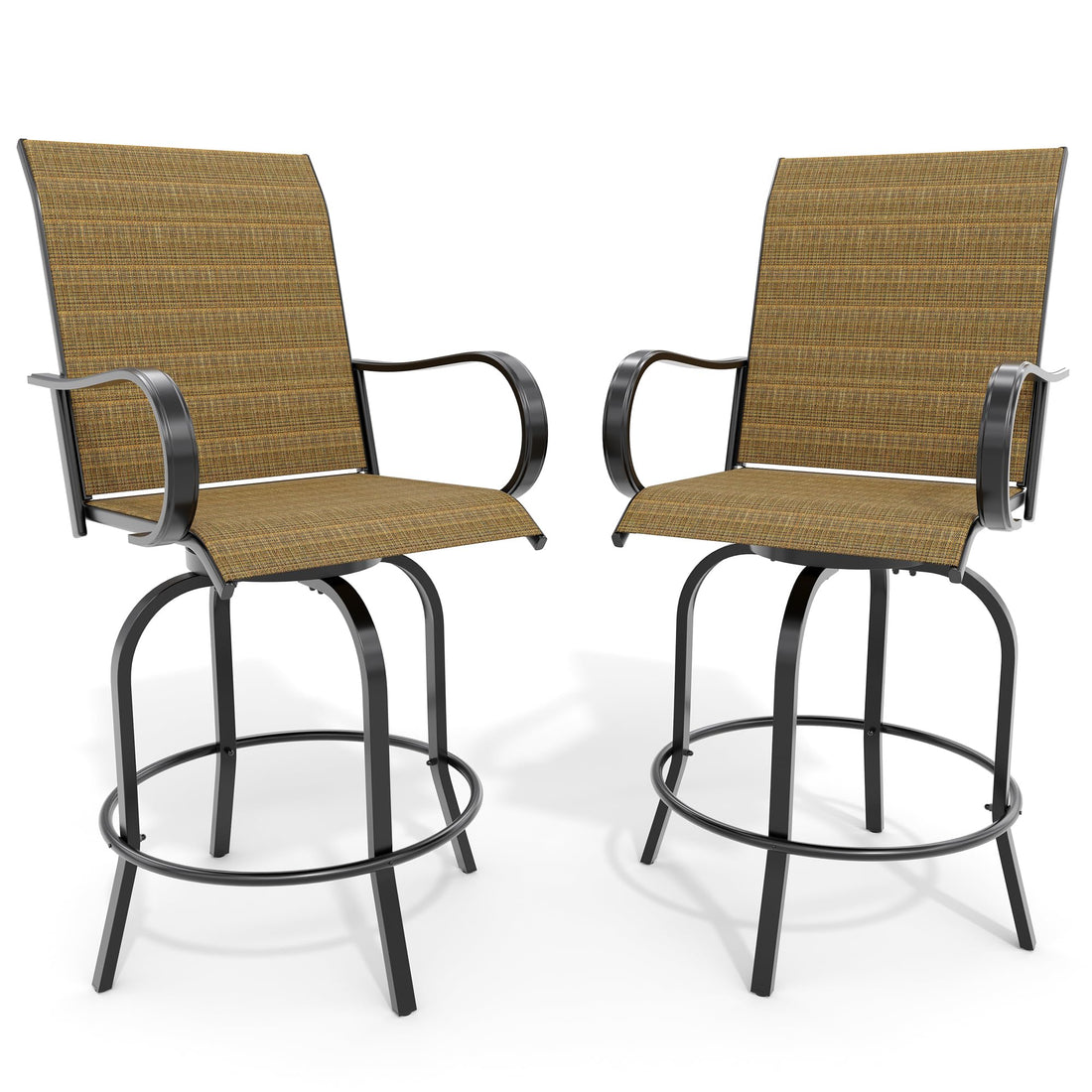 Garvee Outdoor Swivel Bar Stools Set of 2, Patio Swivel Bar Stools Chair, All Weather High Back and Armrest Patio Chairs for Deck Lawn Garden Backyard