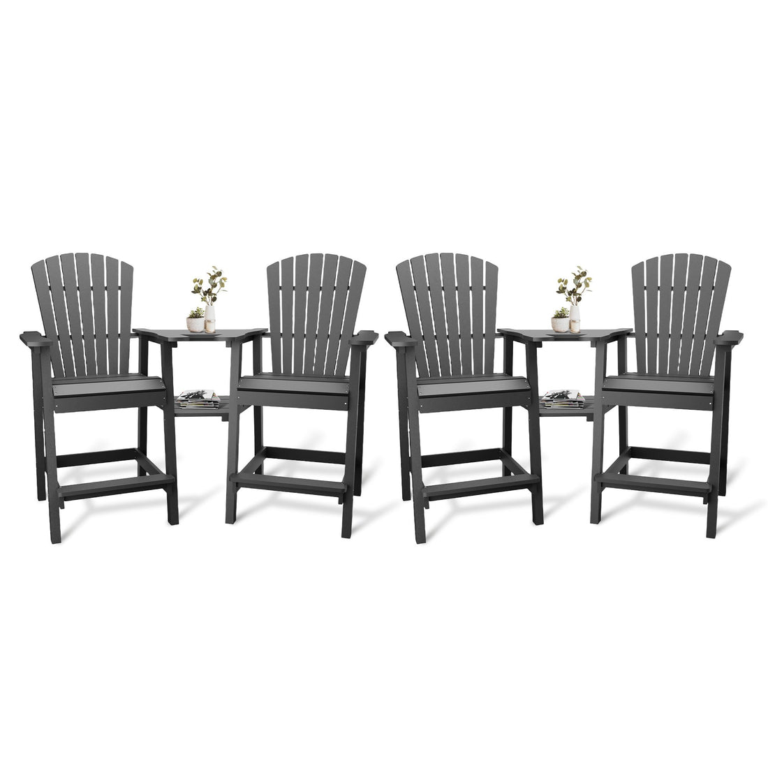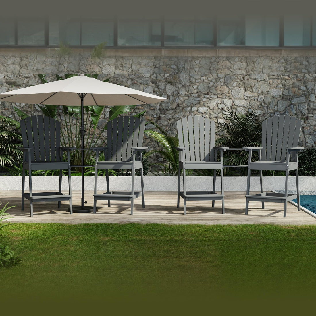 Garvee Outdoor Adirondack Barstools with Connecting Tray, High Back & Built-in Footrest, Solid Wood, Removable Tray & Umbrella Hole, Set of 4, Perfect for Deck & Patio