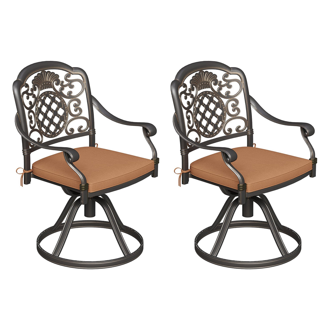 Garvee Set of 2 Swivel Outdoor Dining Chairs with 360° Swivel & Rocking, Aluminum Frame, Removable Cushions, Ergonomic Armrests, Brown, Patio & Garden Use
