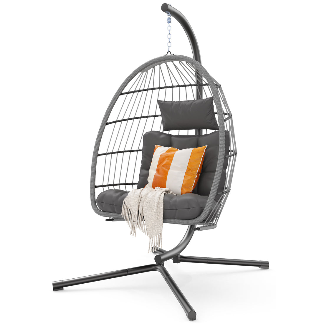 Garvee Patio Rattan Egg Chair with Stand, Hammock Chair with Thickened Aluminum Alloy Steel Frame and UV Resistant Cushion, Grey