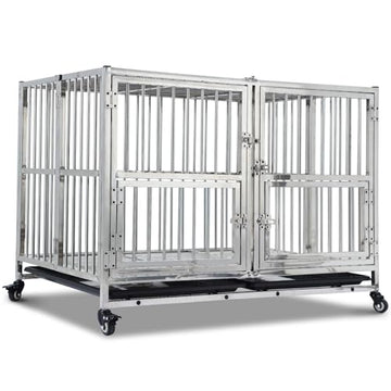 Garvee 42 Inch Full Stainless Steel Dog Crate with Wheels & Double Door