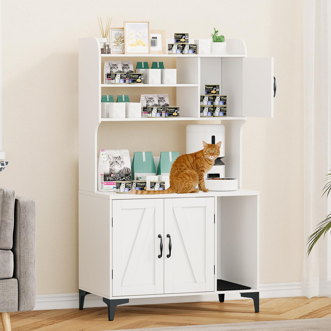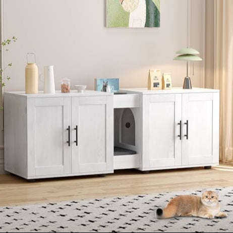 [Extra Large Storage Space] This large cat litter box has 2 large cabinets and an...