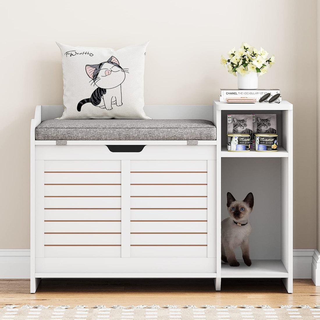【Expand Your Storage Space】Includes a storage rack to organize magazines, cat food, toys, scoops, or...