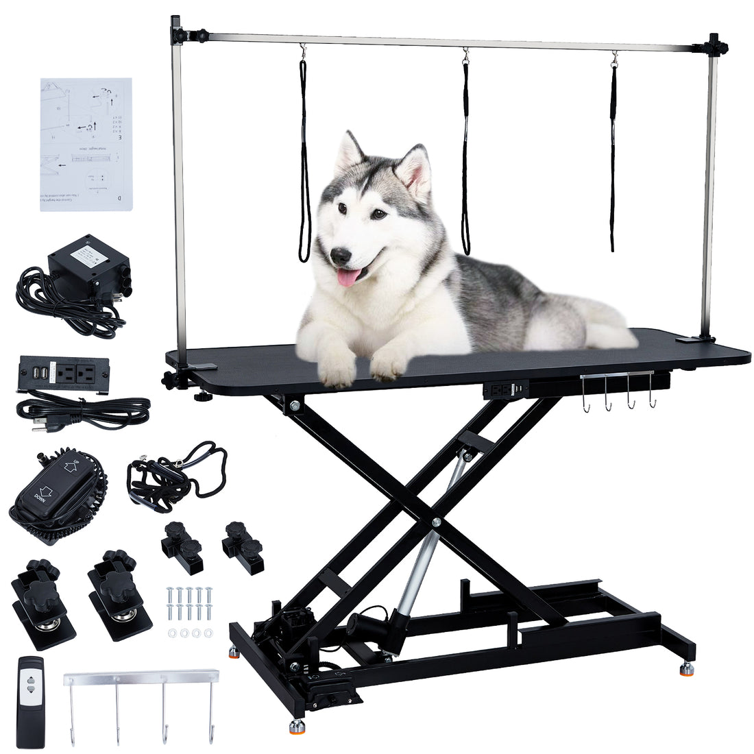 Garvee 50 Inch Electric Dog Grooming Table, Adjustable Heavy Duty X Lift Grooming Table for Large Dogs with Anti-Skid Tabletop,Wireless Remote,Tool Organizer and Arms, Black