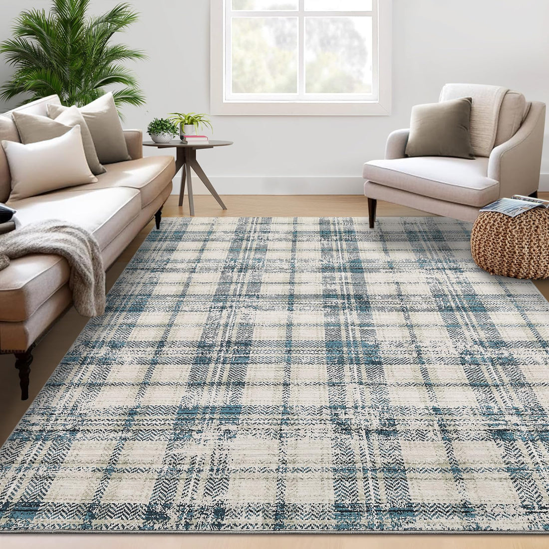 Garvee 9x12 Washable Rug Modern Checkered Area Rug Indoor Plaid Print Floor Cover Soft Faux Wool Throw Carpet Aesthetic Rug Foldable Thin Rug Non-Slip Accent Rug for Living Room Bedroom