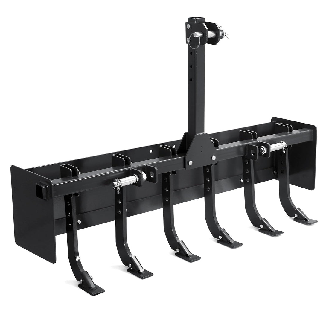 Garvee 55" Box Blade Tractor Scraper, 6 Ripper Shanks, 3 Point Hitch, Carbon Steel, Rust-Proof Coating, CAT-0 & CAT-1 Compatible, Farming & Garden Use