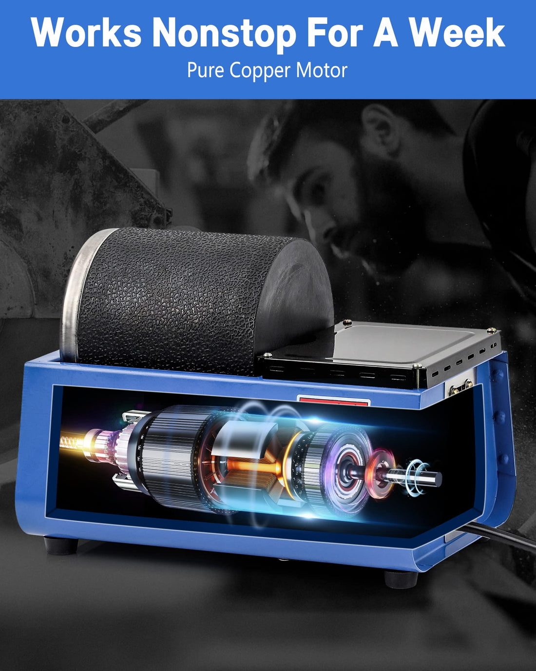 Garvee [3LBS] Professional Rock Polisher Tumbler Kit Includes Rough Gemstones, Quiet Rock Tumbler with Rubber Barrel Could Continue 7 days Polishing