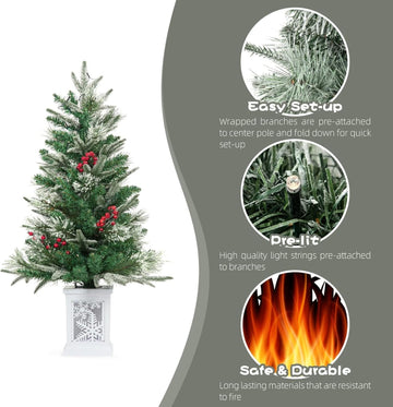 Garvee 3 ft Christmas Tree, Small Prelit Snow Flocked Christmas Tree with 78 Warm White Lights, Battery Box, 8 Lighting Modes, Xmas Holiday Decor for Tabletop, Home, Entrances