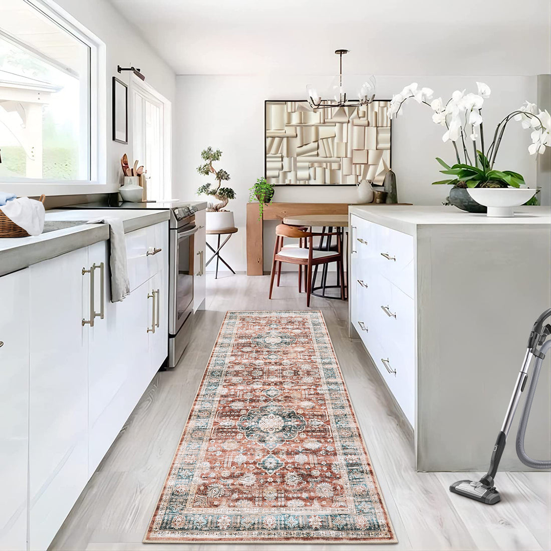 Garvee Washable Runner Rug Vintage 2x6 Red Non-Slip Kitchen Hallway Low-Pile Carpet