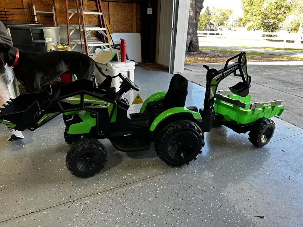 Garvee Ride - P Series: 12V Electric Tractor & Trailer for Kids, 3-6 Yrs - With RC - Green / 35W