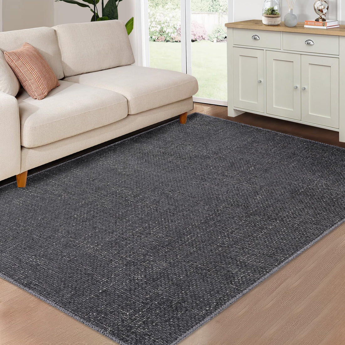 Garvee Modern Solid Textured Area Rug Washable Non-Slip Foldable Carpet for Living Room, Bedroom, Home Office, Dark Grey