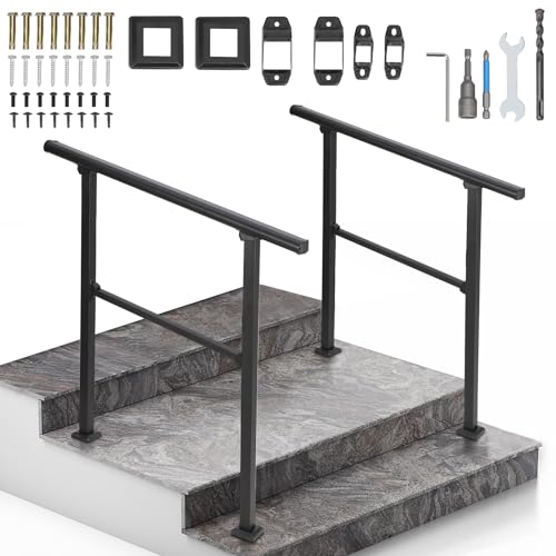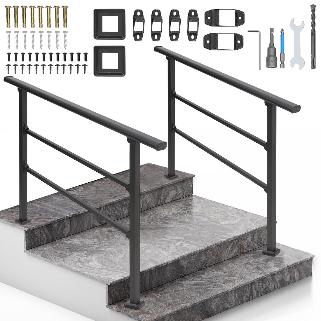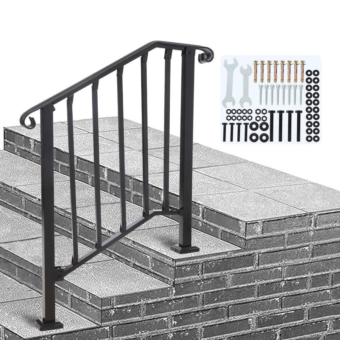 Garvee Outdoor Stair Railing, Fits Various Steps, with Installation Kit - 1-2 Step