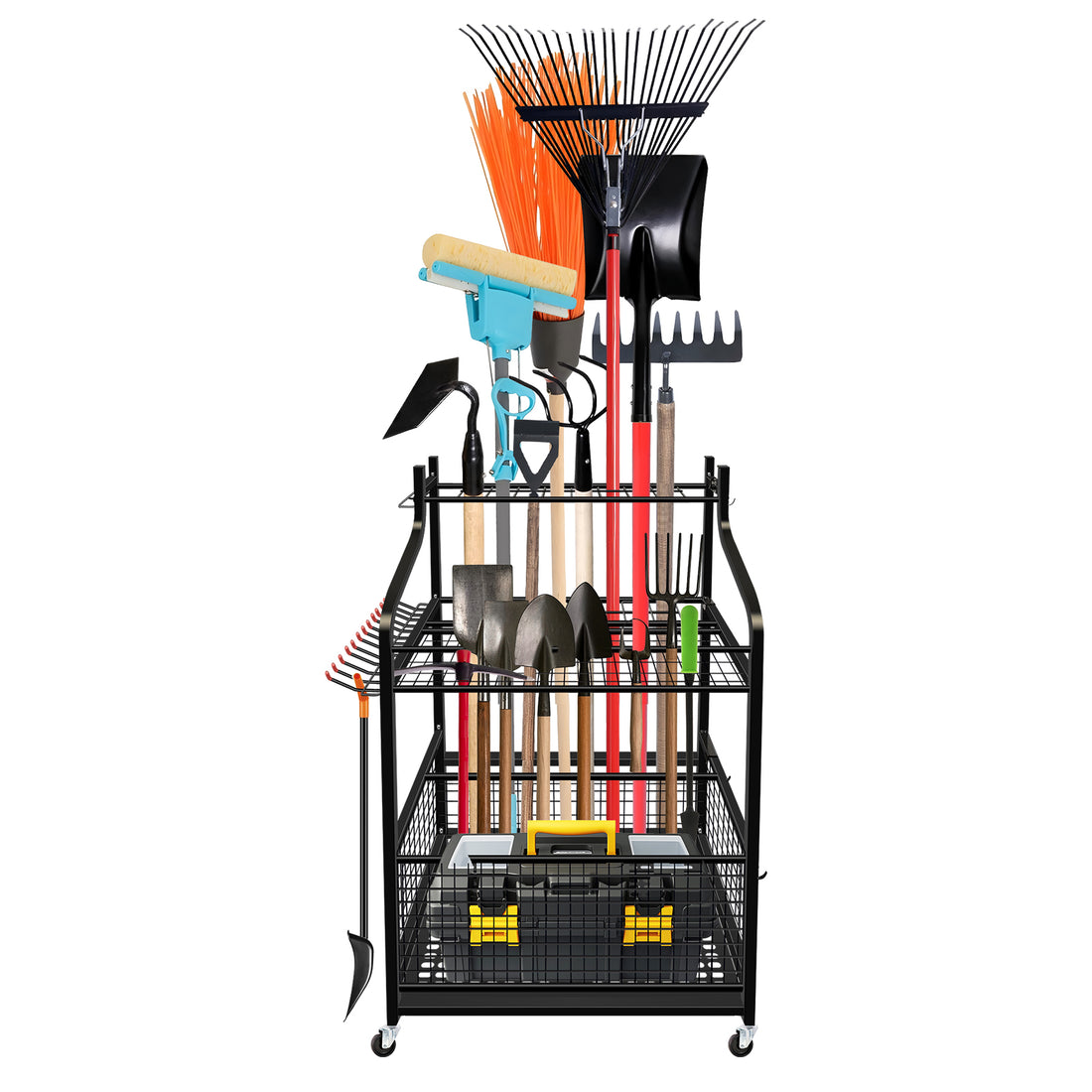 Garvee 26″×16″×38″ Garden Tool Organizer, Metal Yard Tools Storage with Wheels, Yard Tool Organizer, Heavy Duty Garden Tool Organizer for Garage, Garage Tool Organization and Storage for Garage, Shed, Outdoor,Tool Stand, Black