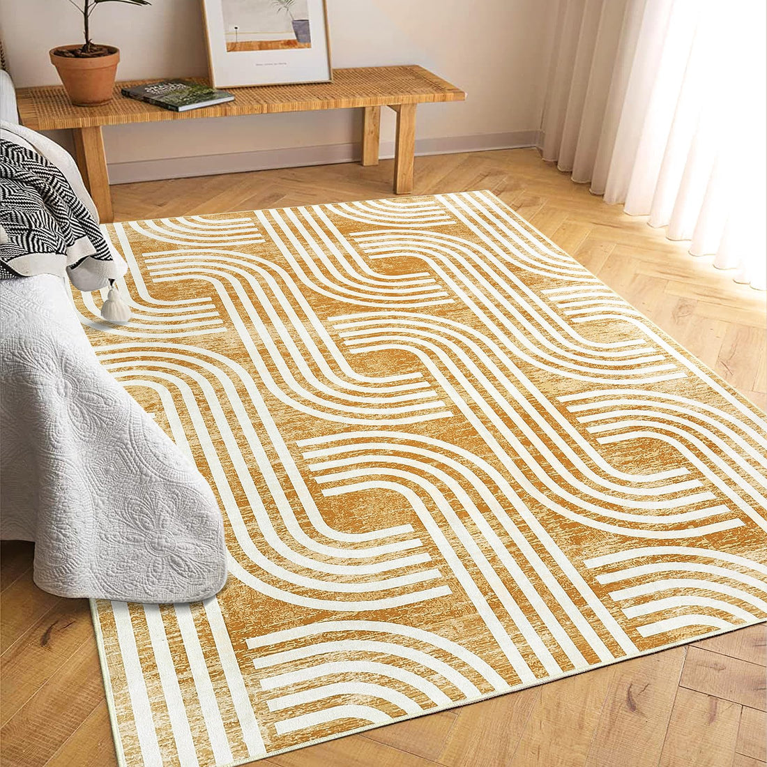 Garvee Modern Camel 8x10 Abstract Area Washable Rug for Living Room, Non-Slip Soft Carpet for Bedroom, Irregular Low-Pile Foldable Print Accent Rug for Dining Room Home Office