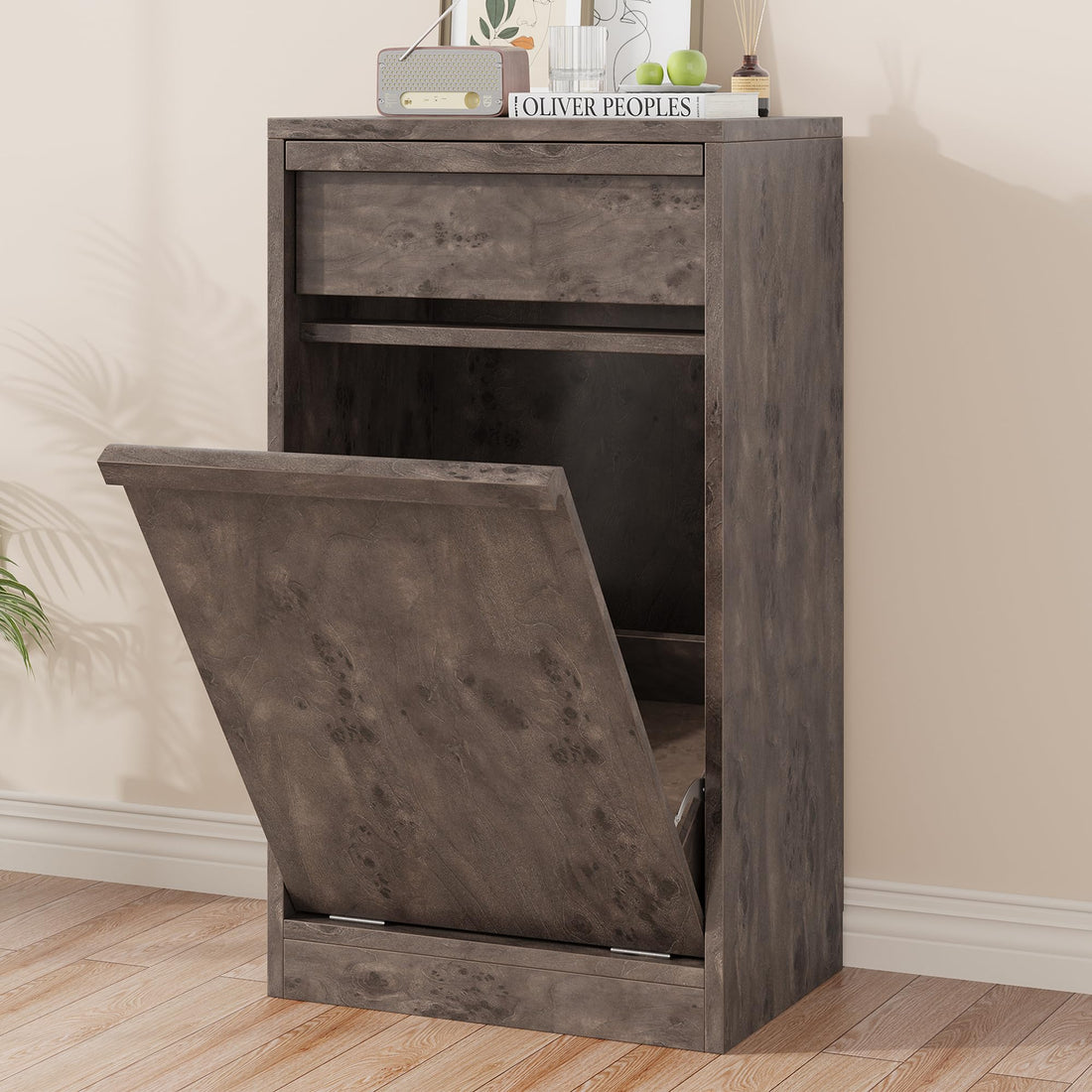 Garvee Tilt Out Trash Cabinet, Hidden Trash Can Cabinet 10 Gallon Storage Holder, Freestanding Garbage Can Cabinet for Kitchen Dining Living Room