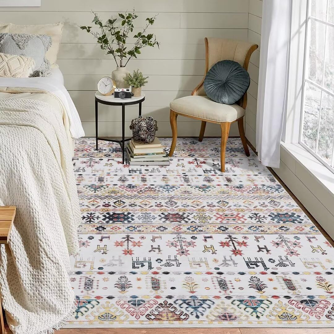Garvee Area Rugs 9x12 for Living Room, Machine Washable Rugs Floor Carpet for Bedroom, Non-Shedding Vintage Rugs for Indoor High Traffic Areas, Low Pile Non-Slip Rug for Dining Room Office Home Decor