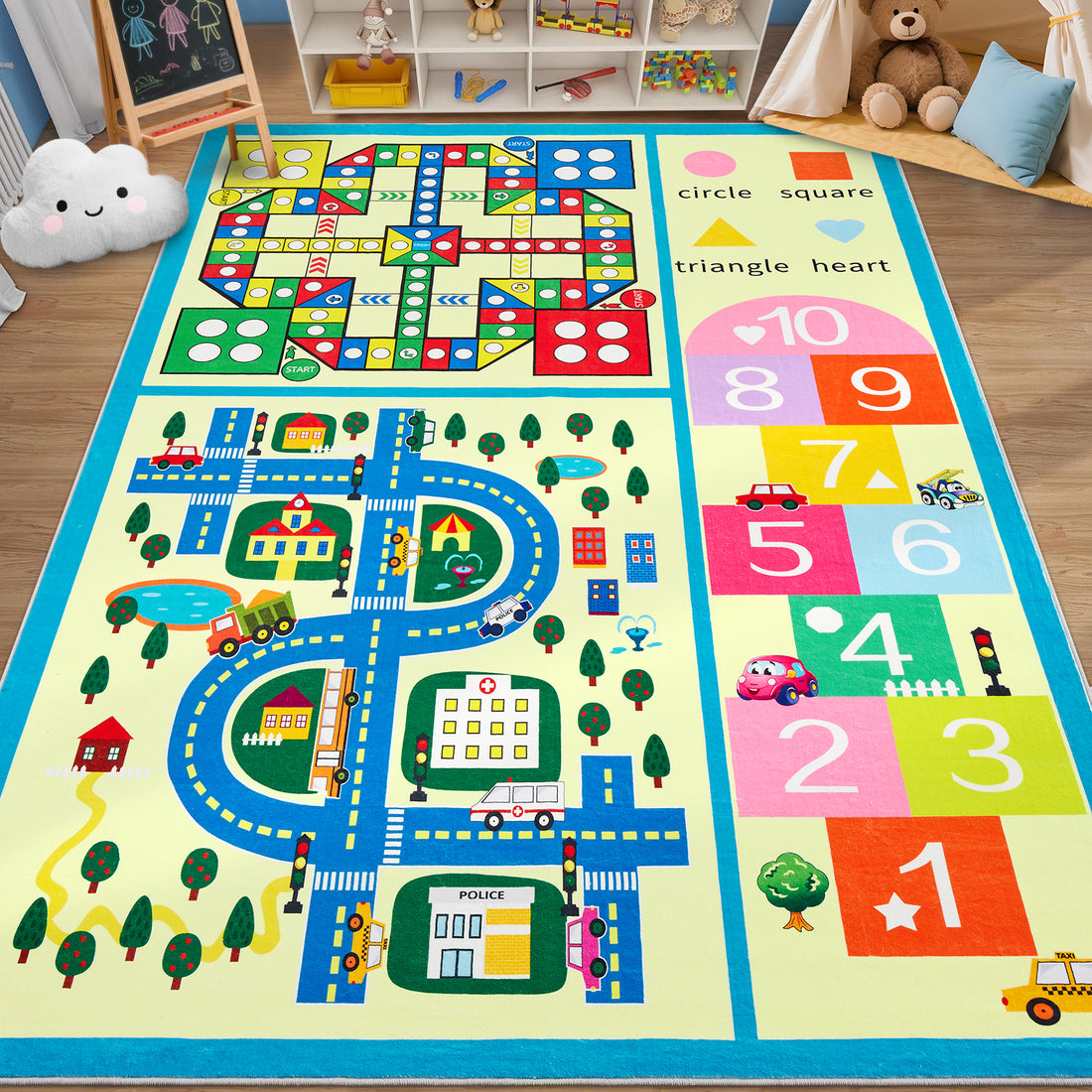 Garvee Washable Soft Kids Rug for Playroom, Classroom, or Nursery – 5x7 Non-Slip Educational Learning Carpet with Colors, Shapes & Numbers, Foldable Play Mat for Toddlers Girls Boys