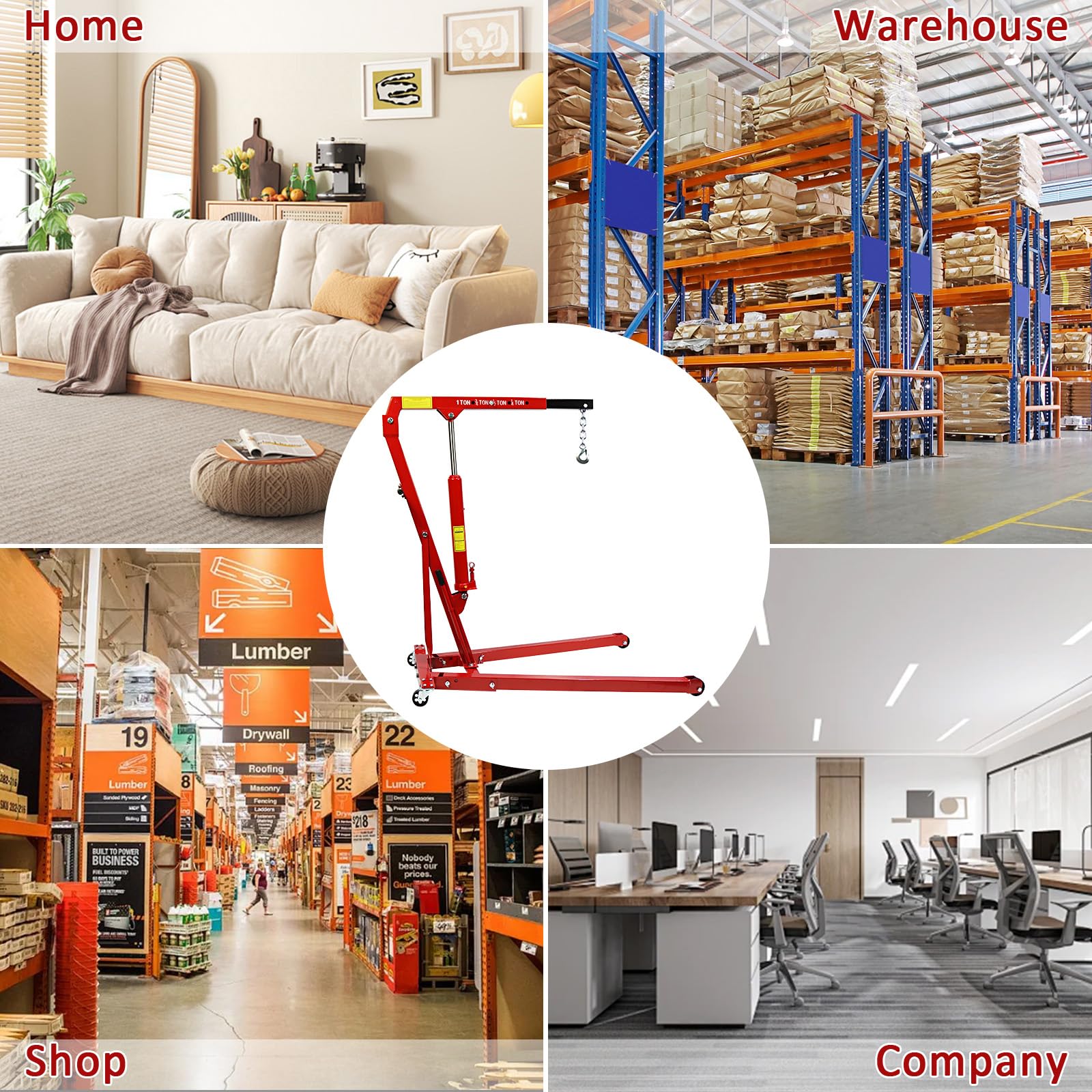 Garvee 1 Ton Folding Engine Hoist, 2200 LBS Lift for Shop Use