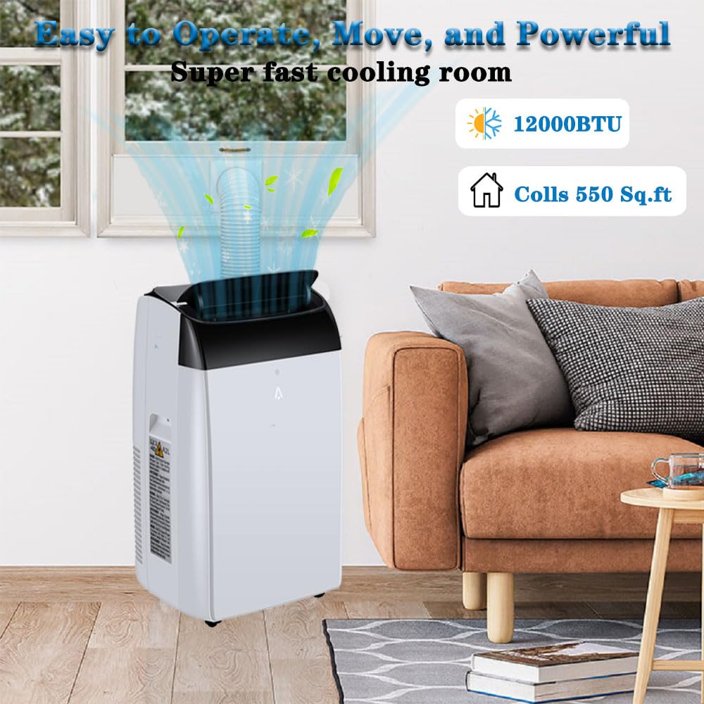 Garvee 12000 BTU 3-in-1 Portable AC Unit | Cools 550 sq.ft with Fast Auto Cooling | Quiet Air Conditioner with Dehumidifier for Bedroom & Living Room - Black