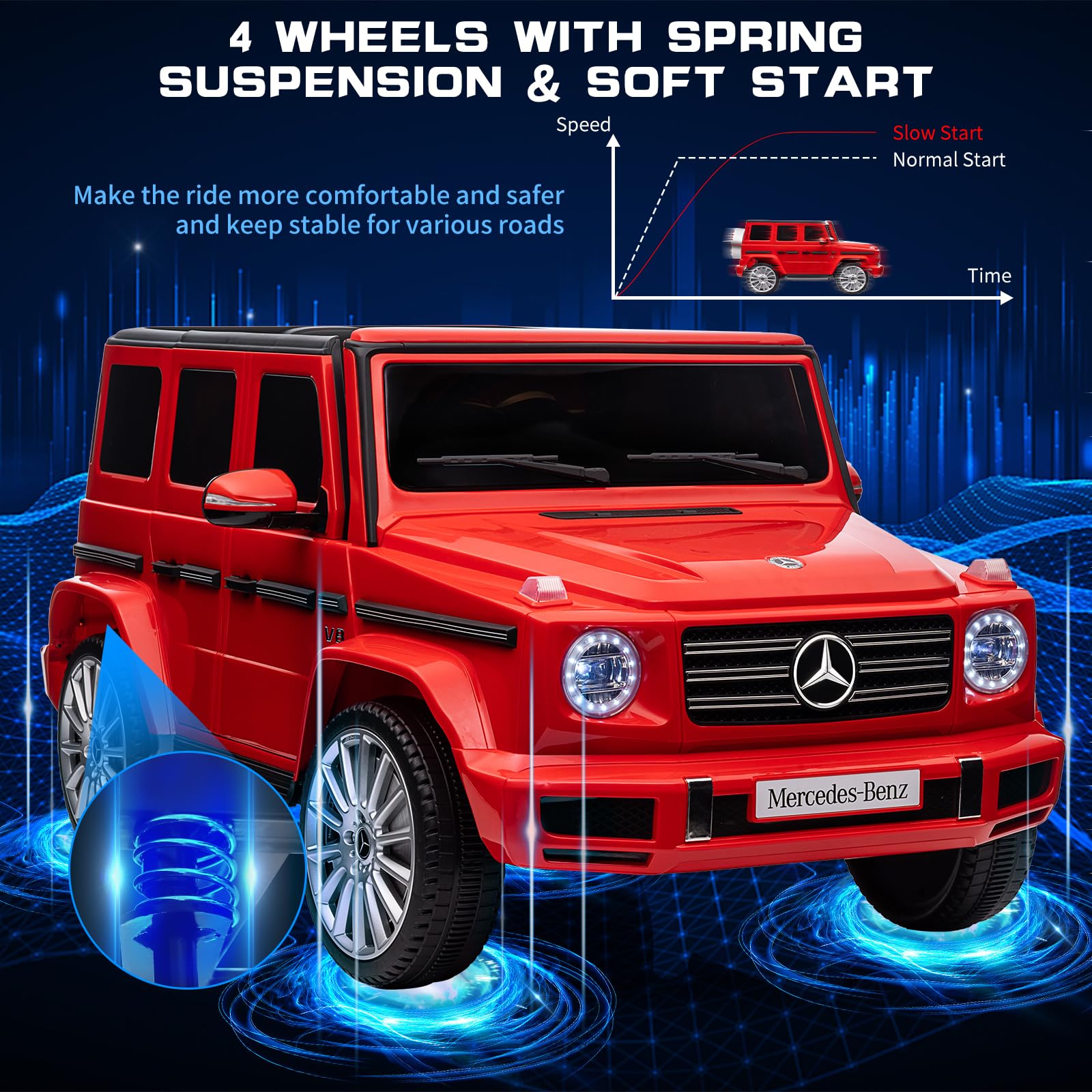 Garvee 12V Kids Ride On Car, Licensed Mercedes-Benz G500 Electric Vehicles w/Parent Remote Control, 4xSpring Suspension, 3 Speeds, Rocking, LED Lights, Battery Powered Ride on Toy for Boys Girls, Red