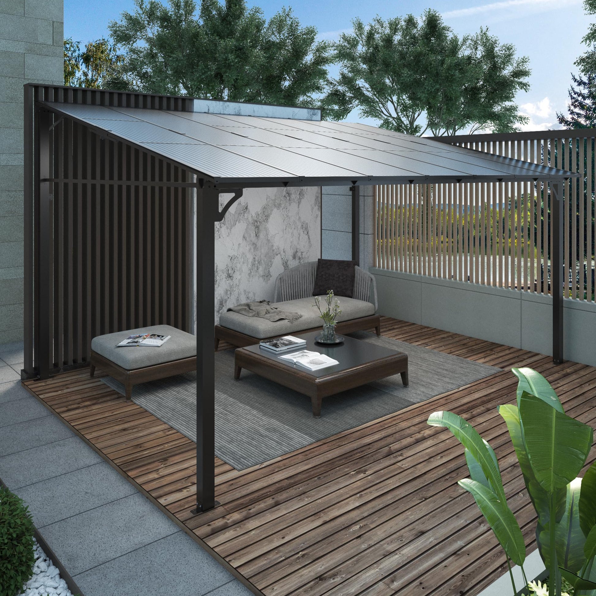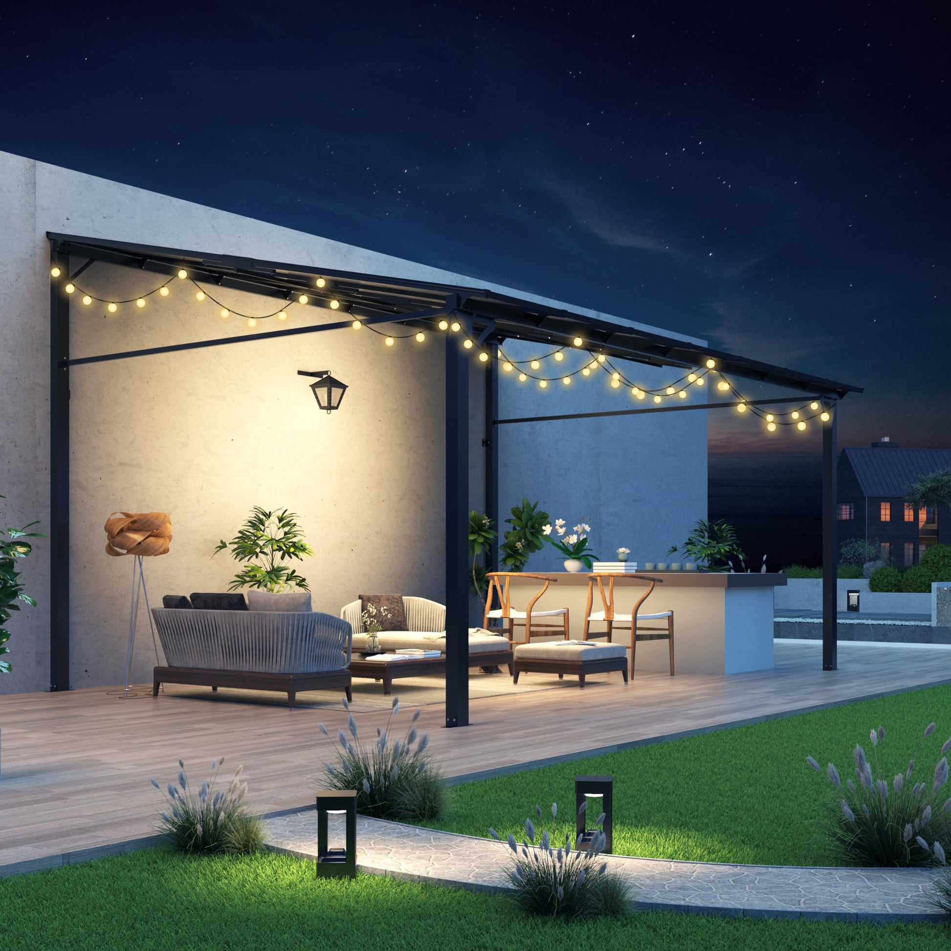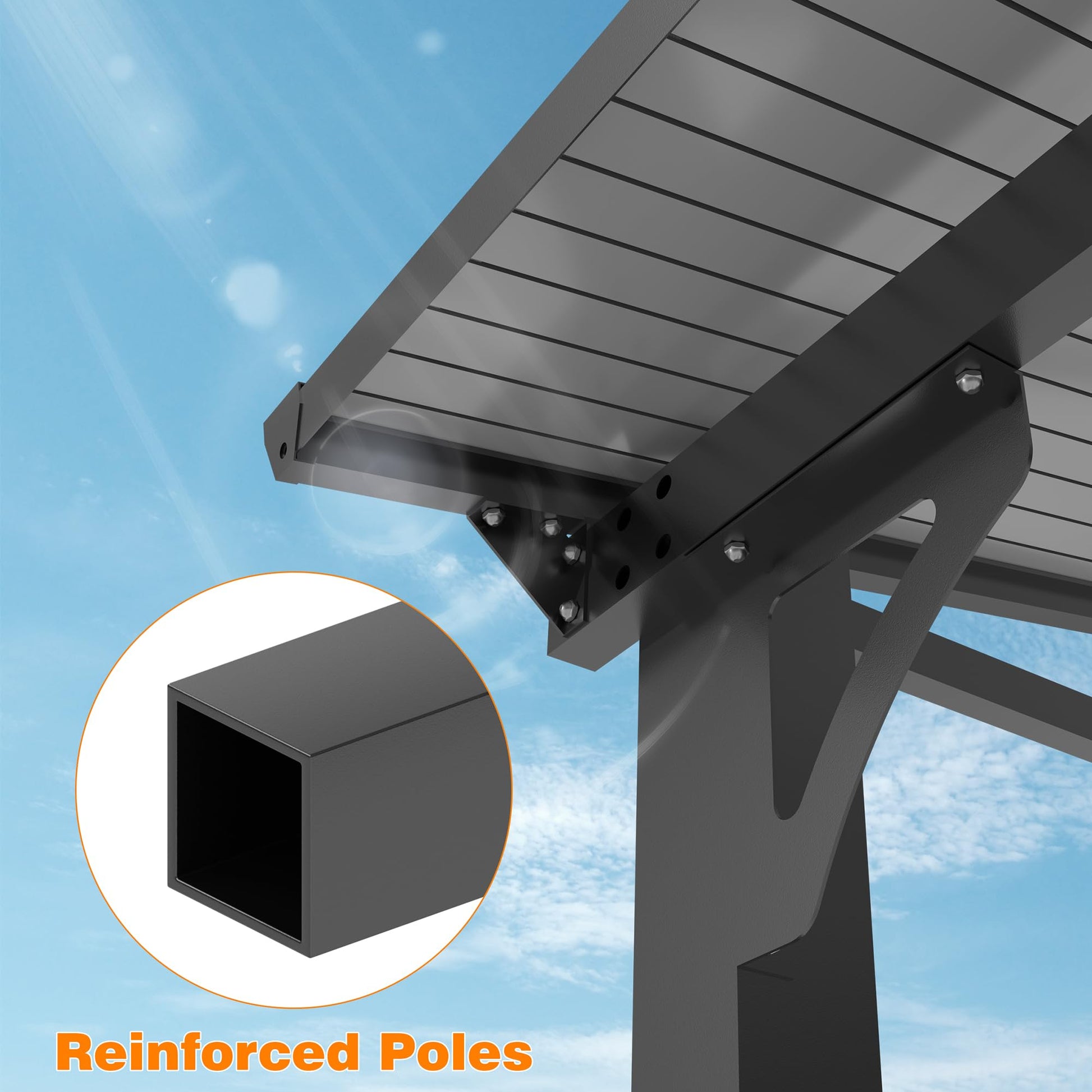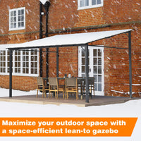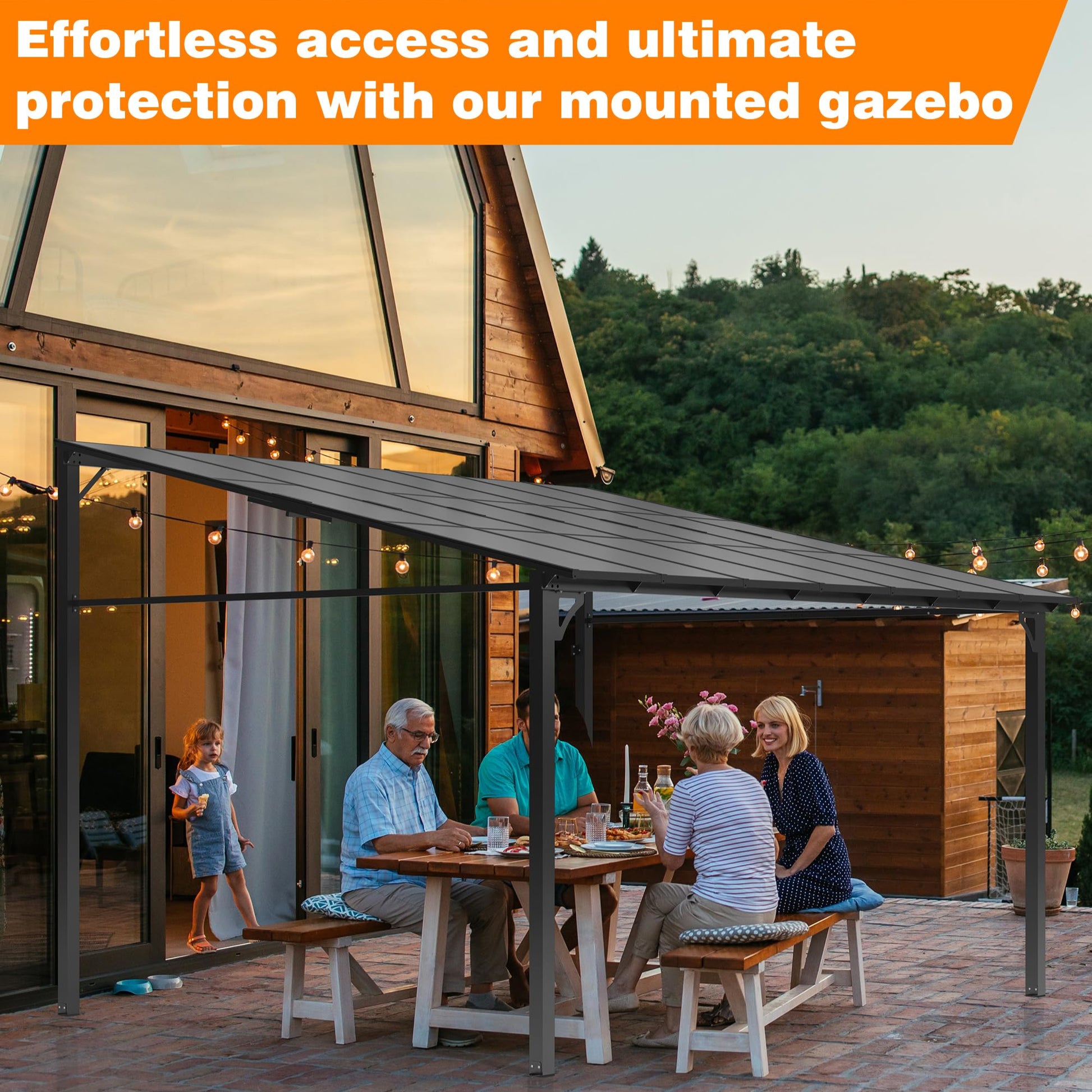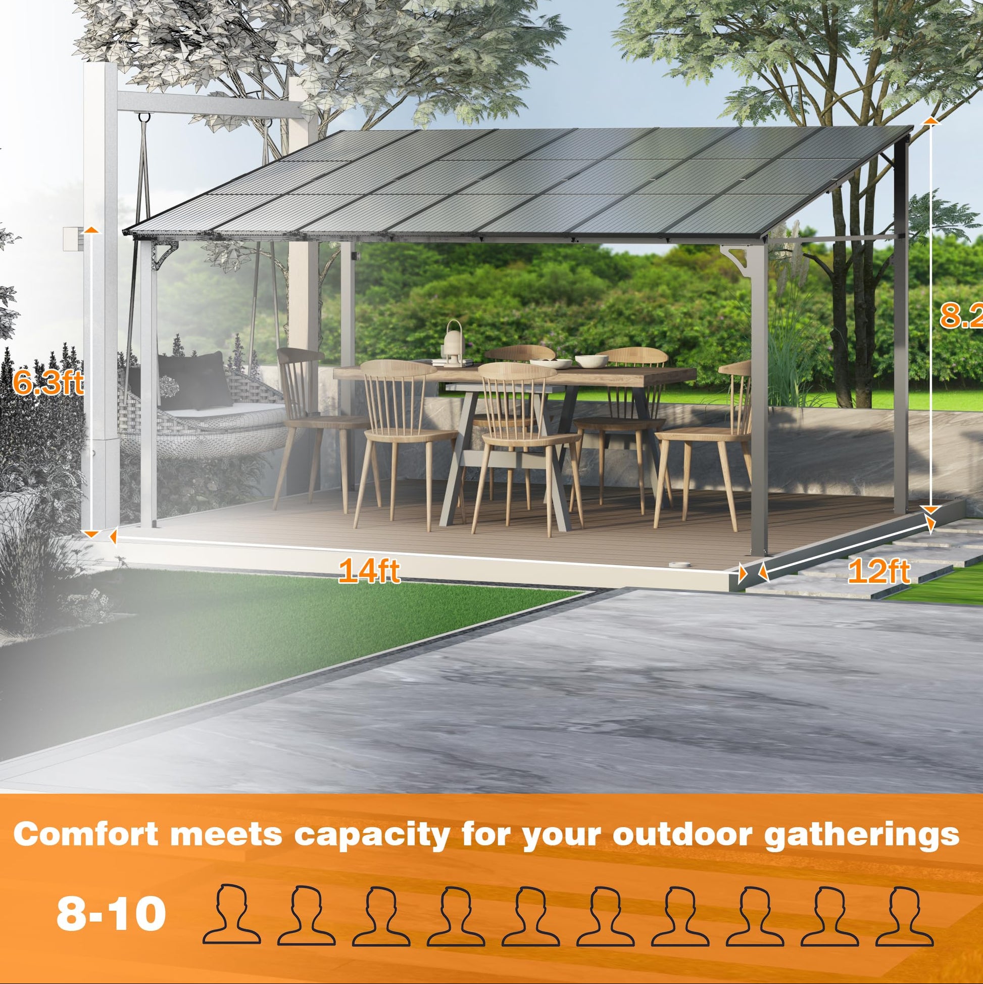 Garvee 12'x14' Lean To Gazebo Hardtop Wall Pergola with Polycarbonate Roof for Lawn Patio Deck and Party Space Efficient Aluminum Frame Grey