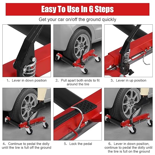Garvee 1500lbs Car Wheel Dolly, Ratcheting Pedal Lift,2 Pack