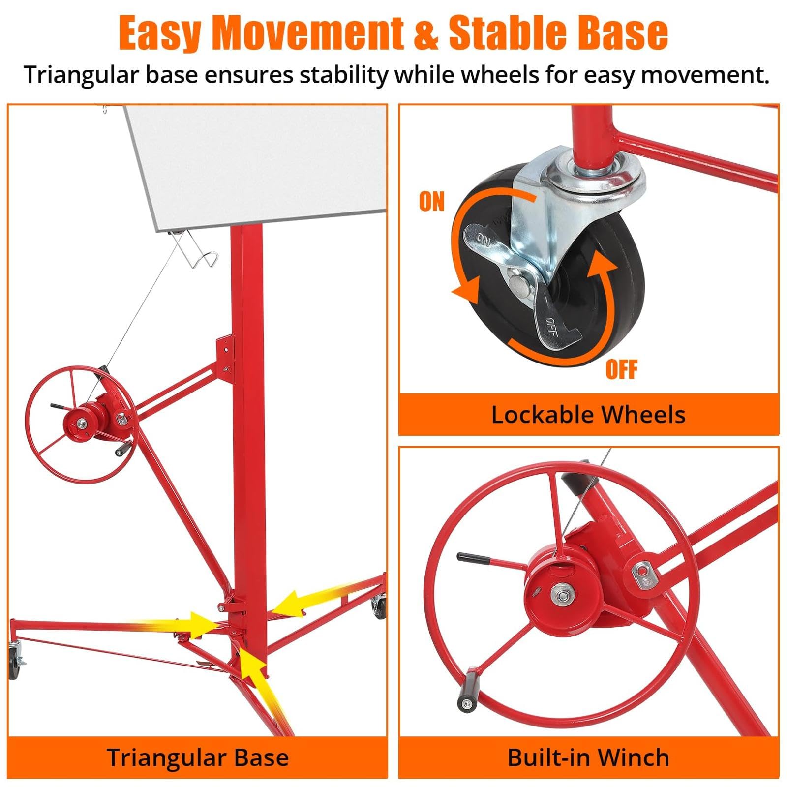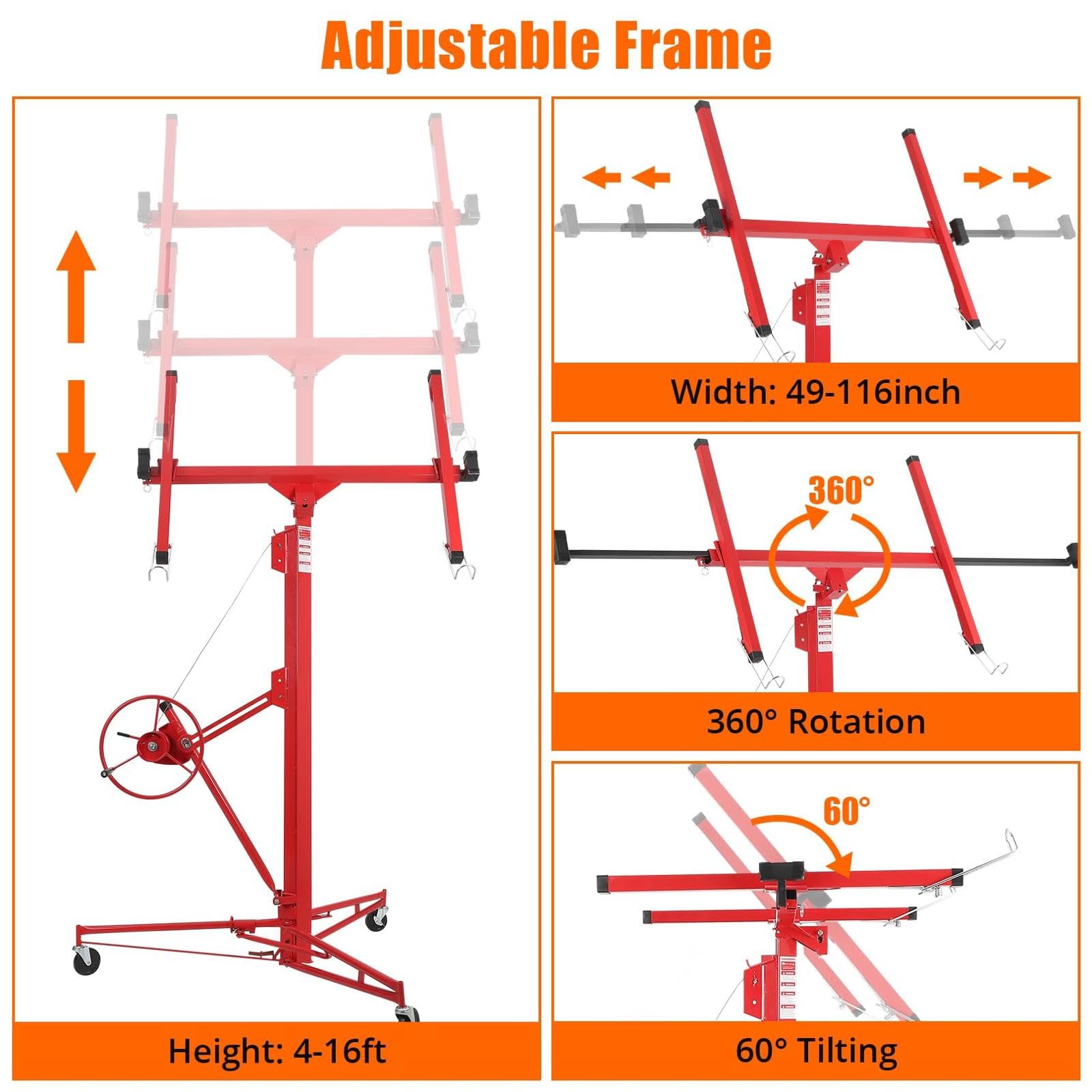 GARVEE 16ft Drywall Lift - 150LB Capacity Adjustable Hoist w/Lockable Casters for Ceiling Work (Home & Commercial Use)
