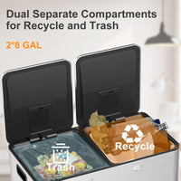 Two 8-gallon compartments perfect for separating recyclables and regular waste efficiently.
