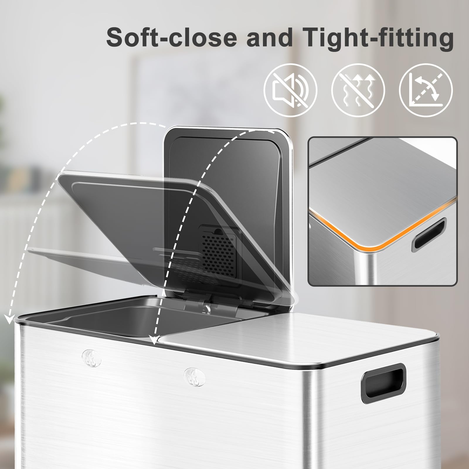 With its sleek design, hands-free operation, and soft-close lid mechanism, this dual trash can combines style with functionality, making it an essential addition to any modern kitchen.