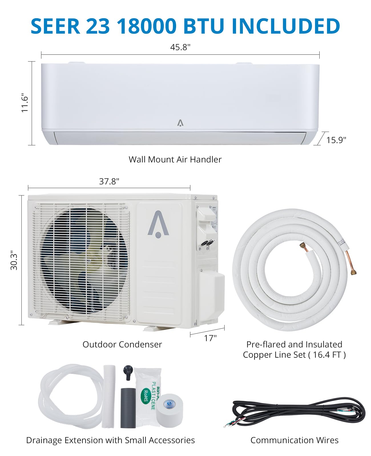 Garvee Mini Split AC/Heating System With WiFi, With Energy Star Certification, 18000 BTU 23 SEER 2 208/230V~, Suitable for 1250+ Sq. Ft