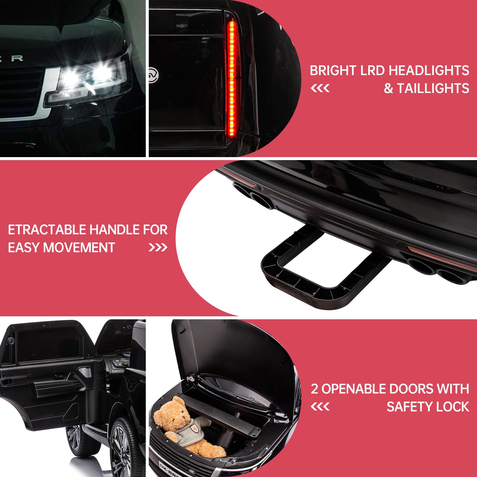 Garvee Ride - P Series: 24V 2-Seater Land Rover Ride-On Car For age 3+, With MP3, 3 Speeds, Remote Control, LED, 4-Wheel Suspension - Black