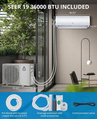 Garvee Mini Split AC/Heating System With WiFi, 36000 BTU 19 SEER 2 208/230V~, Suitable for 2500+ Sq. Ft
