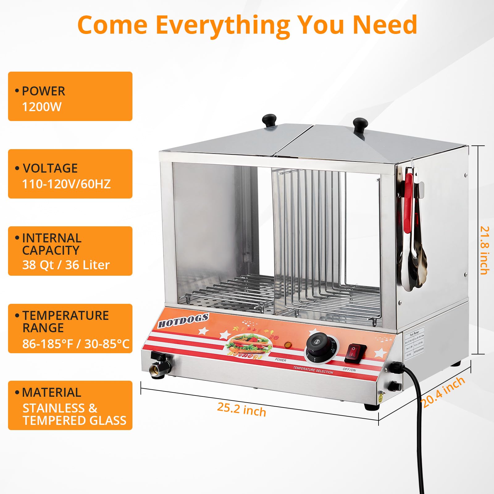 Garvee 36L Hot Dog & Bun Steamer, Adjustable Temp, Stainless Steel