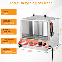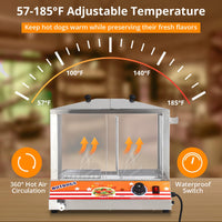 The clear acrylic panels offer excellent visibility of your products, while the precision temperature control ensures optimal warming conditions for both hot dogs and buns.