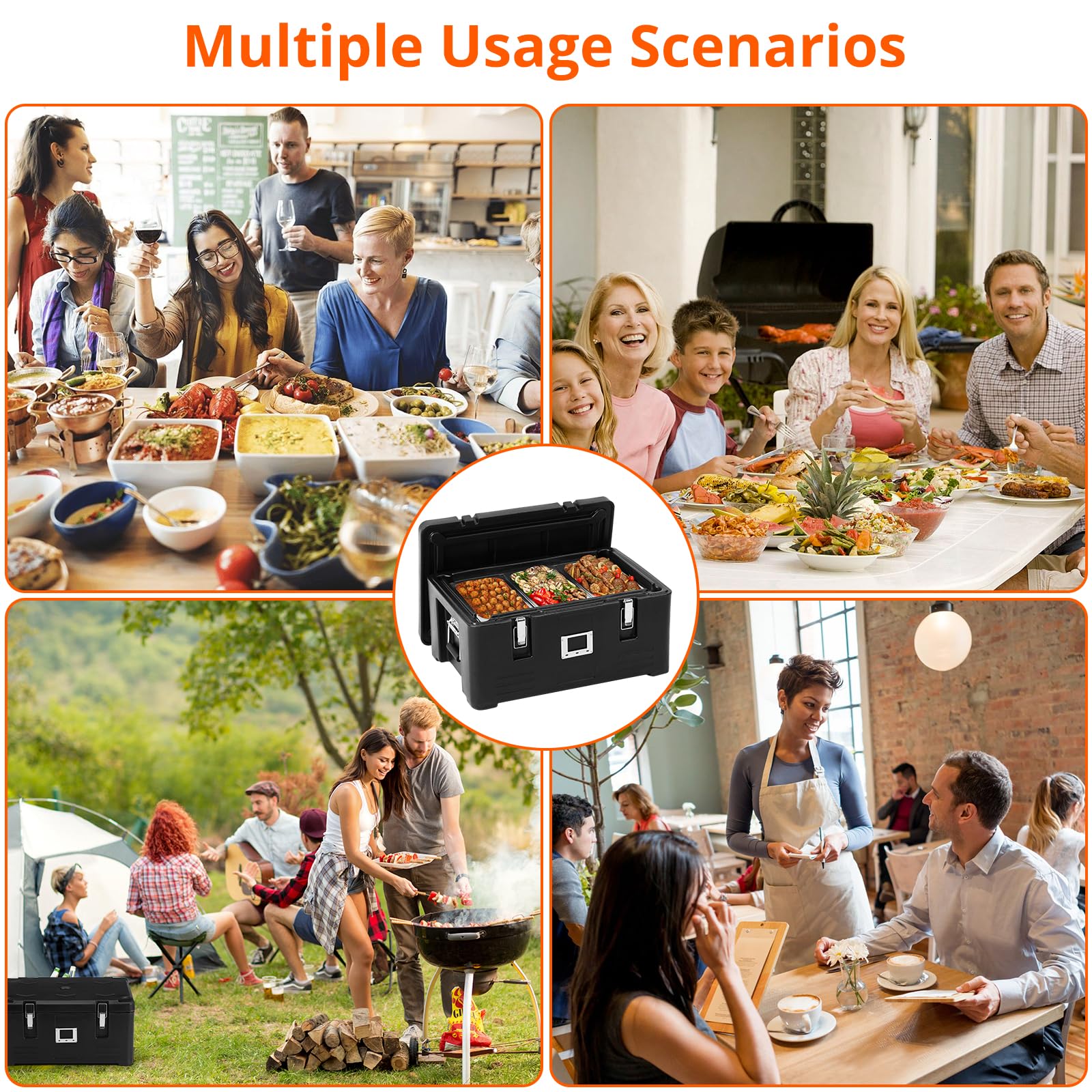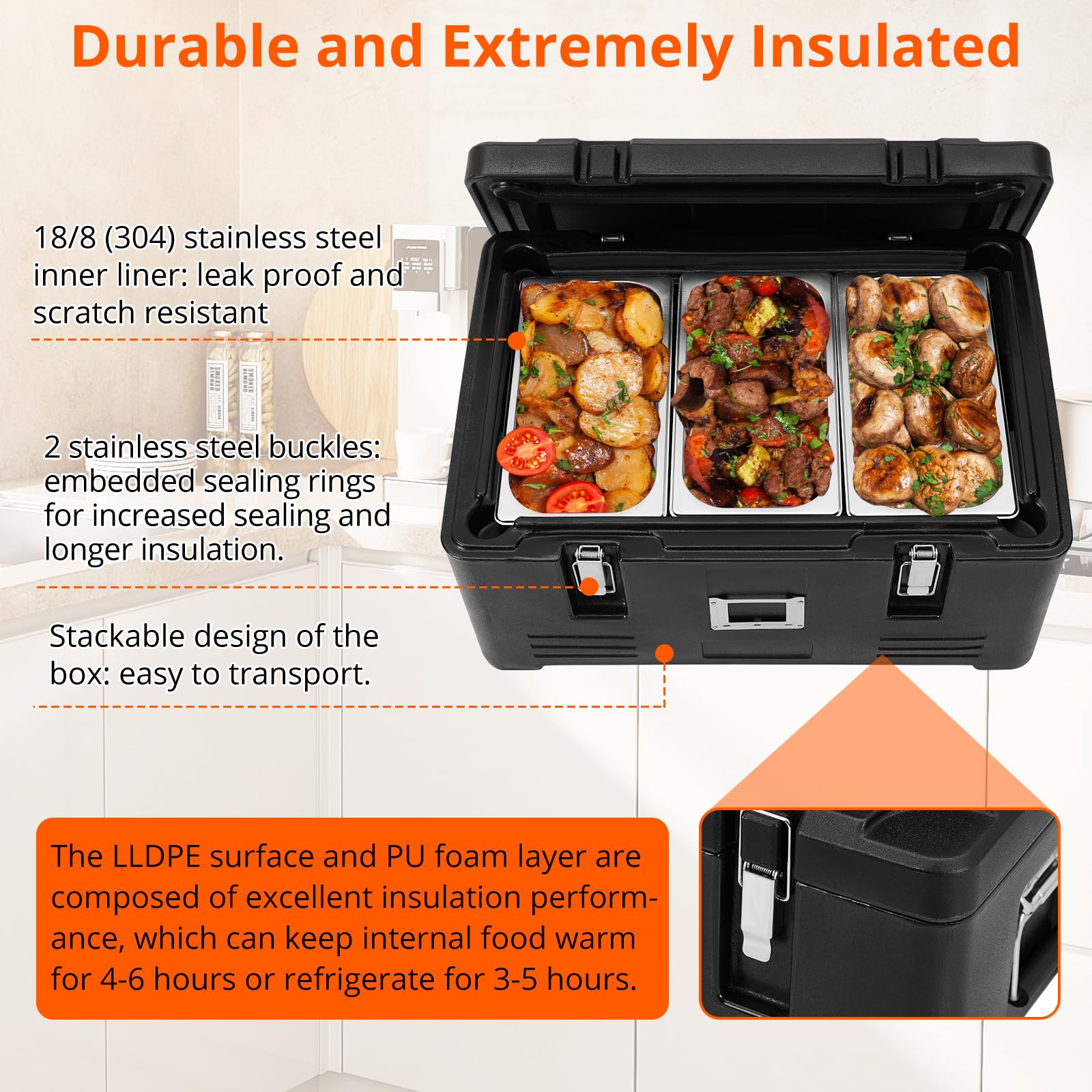 Garvee Catering Food Warmers Insulated Food 36Qt Capacity Food Warmers for Parties Food Warmer Boxes with 3 Stainless Steel Pans, Easy to Transport Warmers for Food Trays for Party Picnic Restaurant Canteen