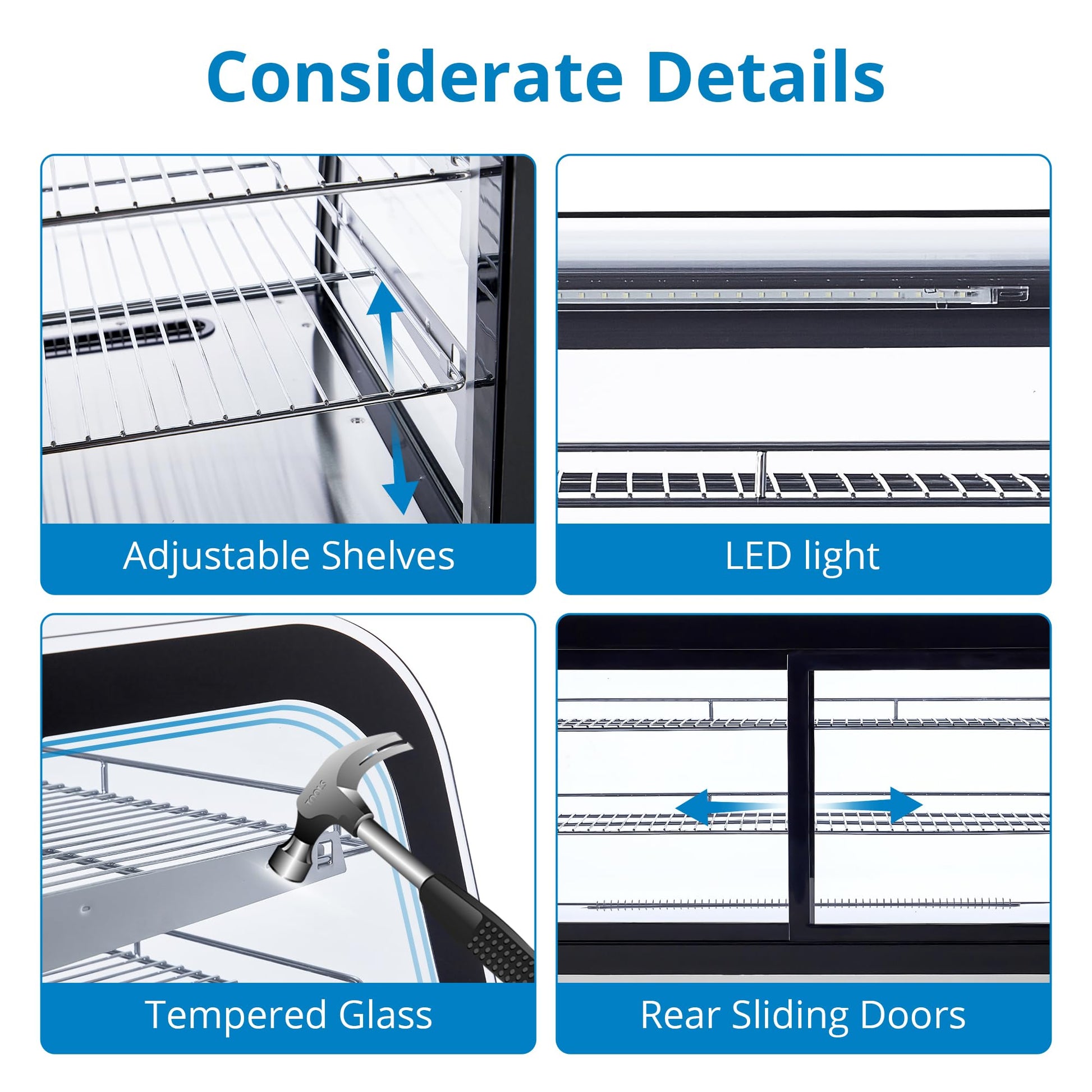 With its compact size and countertop placement, the display cooler saves valuable floor space in your bakery, cafe, coffee shop, or convenience store, allowing you to maximize your retail space while still showcasing a variety of items.