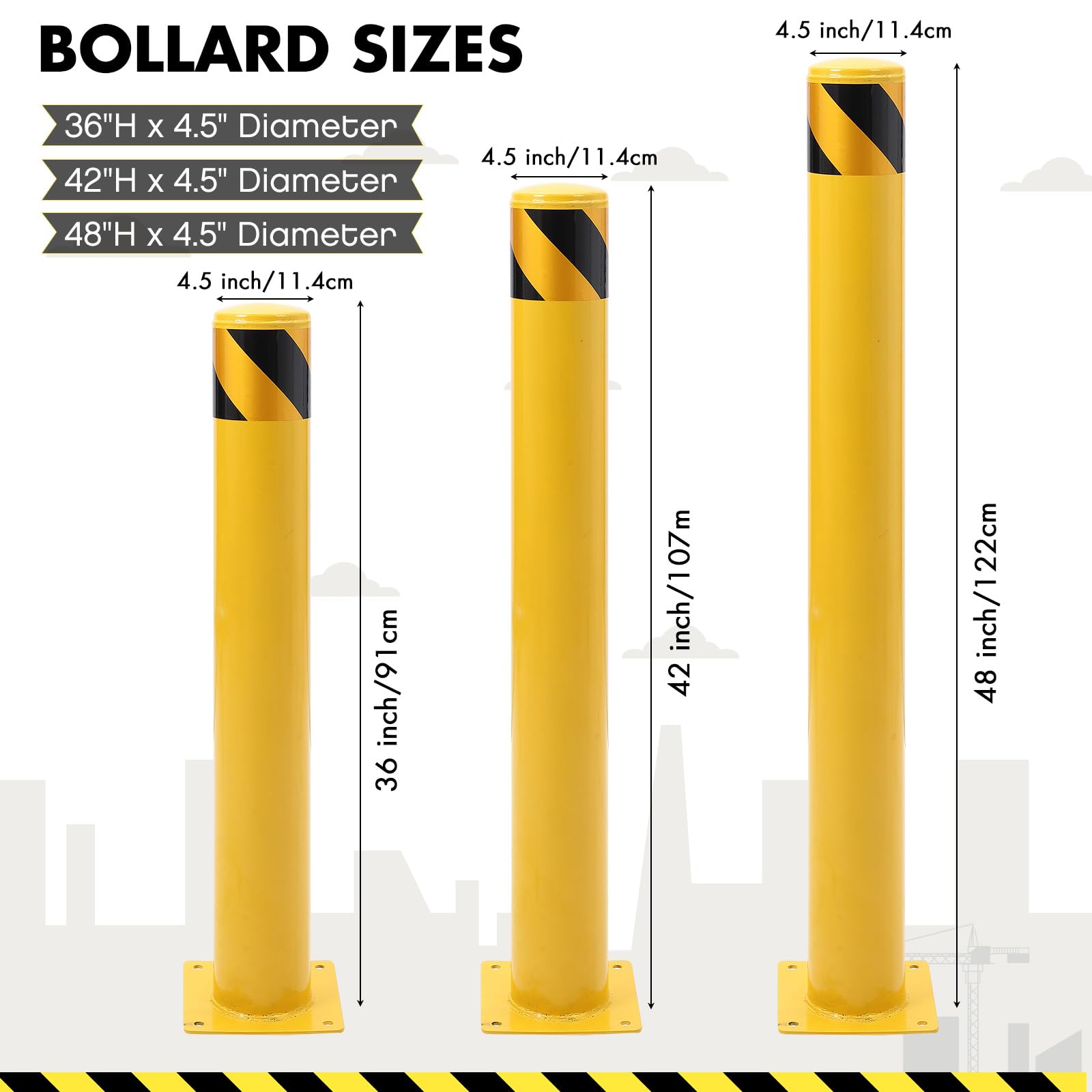 Garvee 42x4.5 Inch Steel Safety Bollard for Parking & Traffic Control
