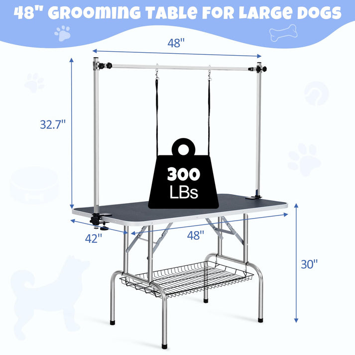 Garvee 48" Dog Grooming Table Adjustable Height Pet Drying Desktop Foldable Pet Grooming Table with Arms, Nooses, Mesh Tray, Foldable Pet Station Max Capacity Up to 330Lbs ,Blue