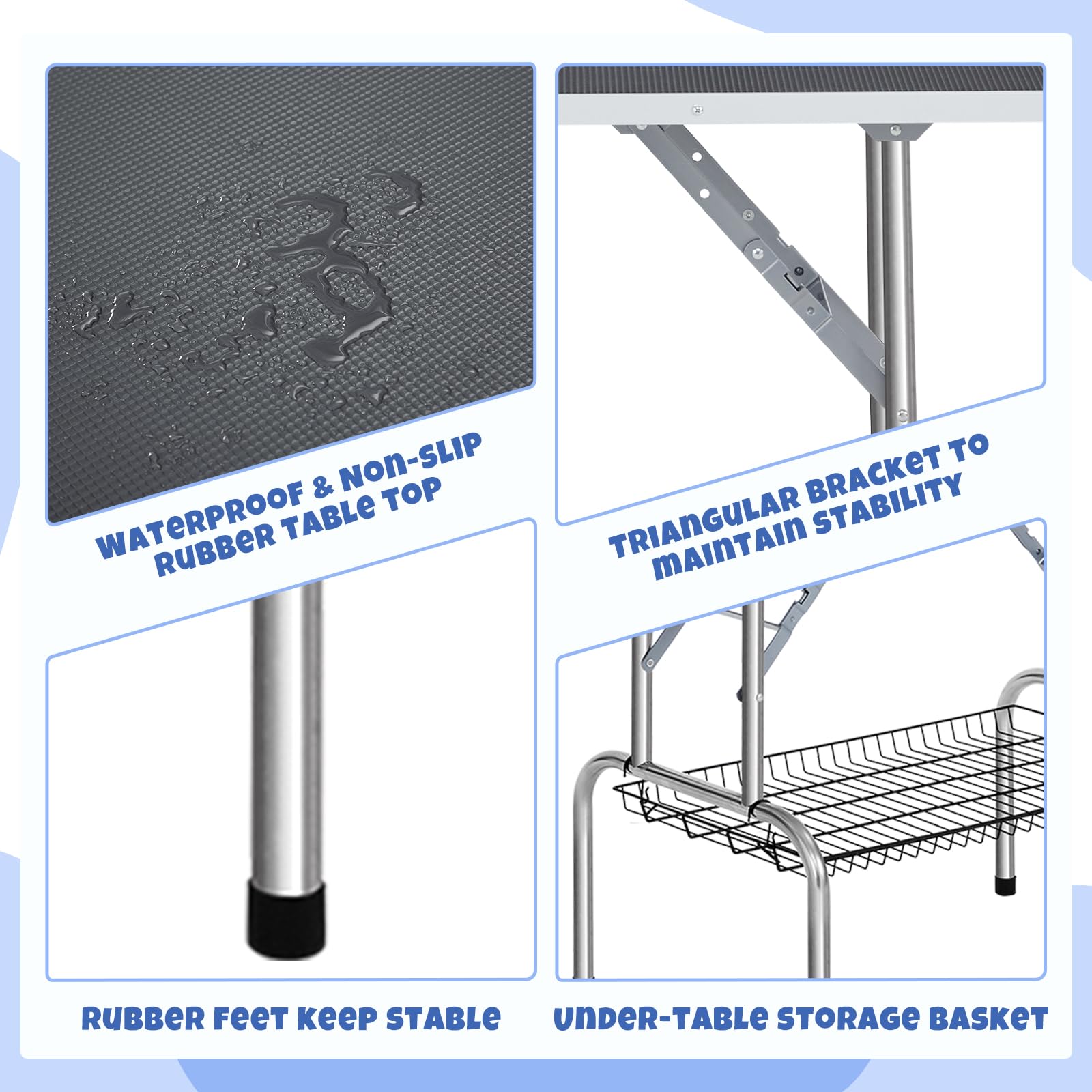 The foldable design allows for easy storage and transportation, making it perfect for mobile groomers or those with limited space. Set up or pack away in minutes, without compromising on stability or functionality.