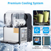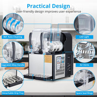 Garvee Commercial Slushie Machine 4Lx2 Stainless Steel 300W Self-Cleaning Double Tank for Home Coffee Shop Restaurant