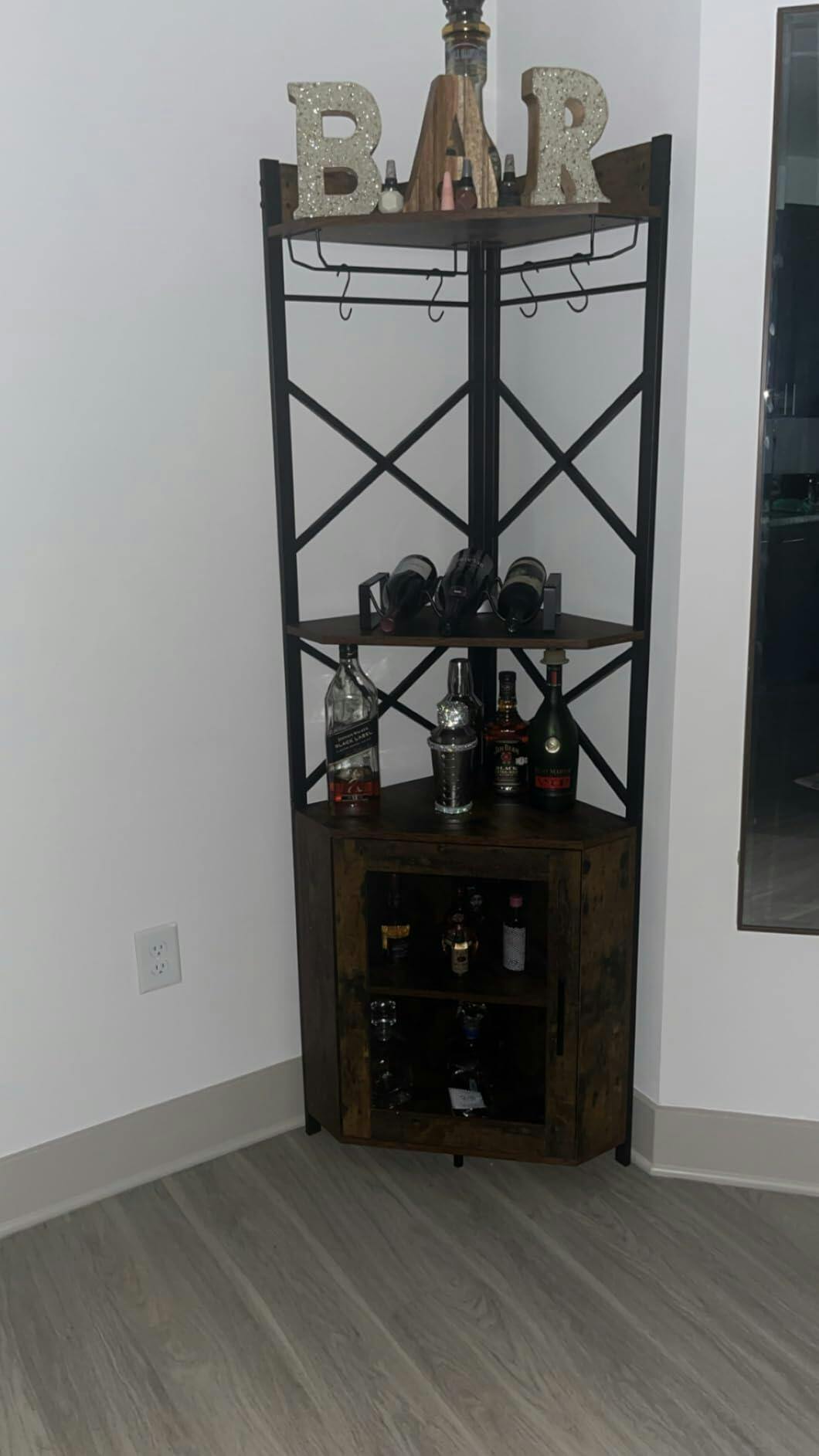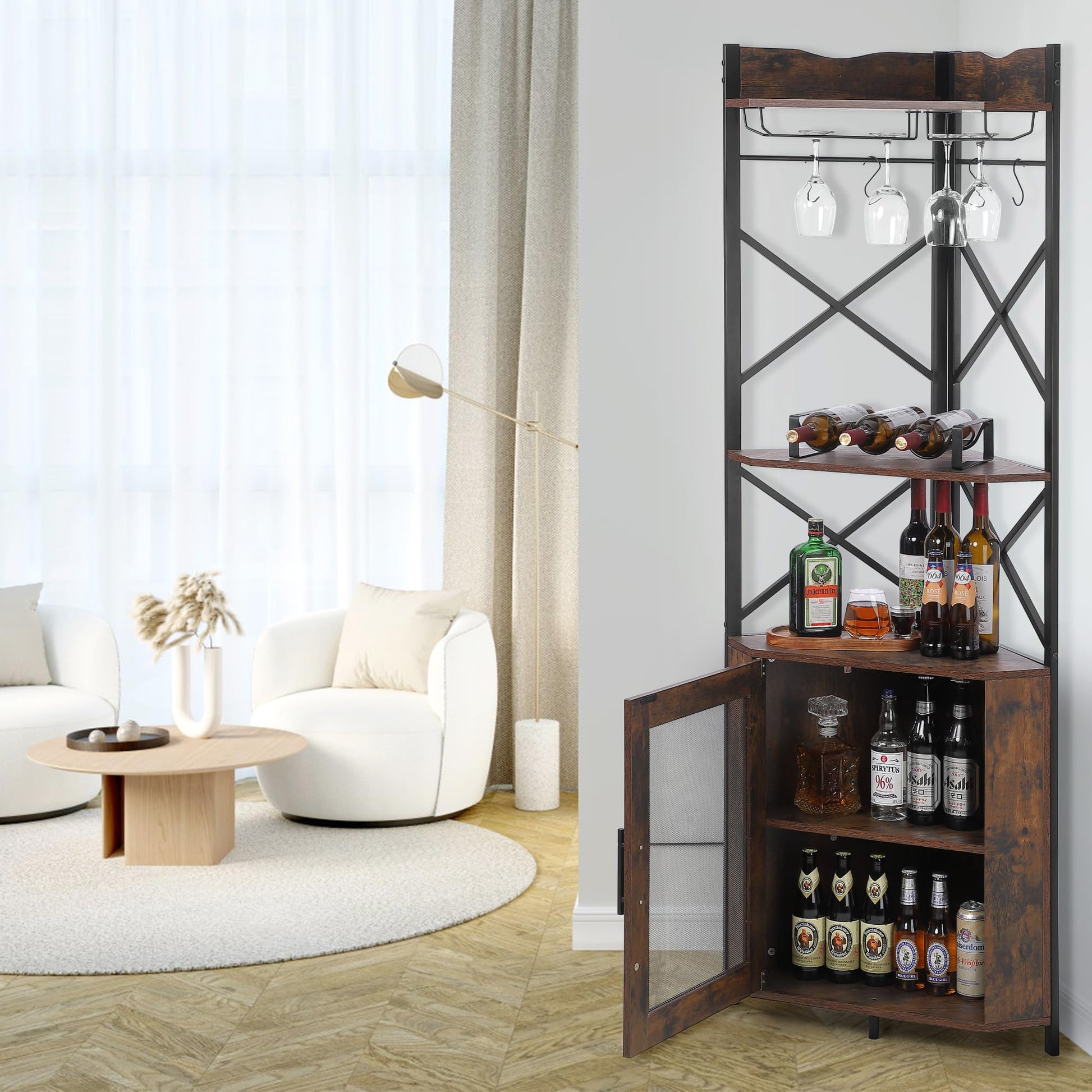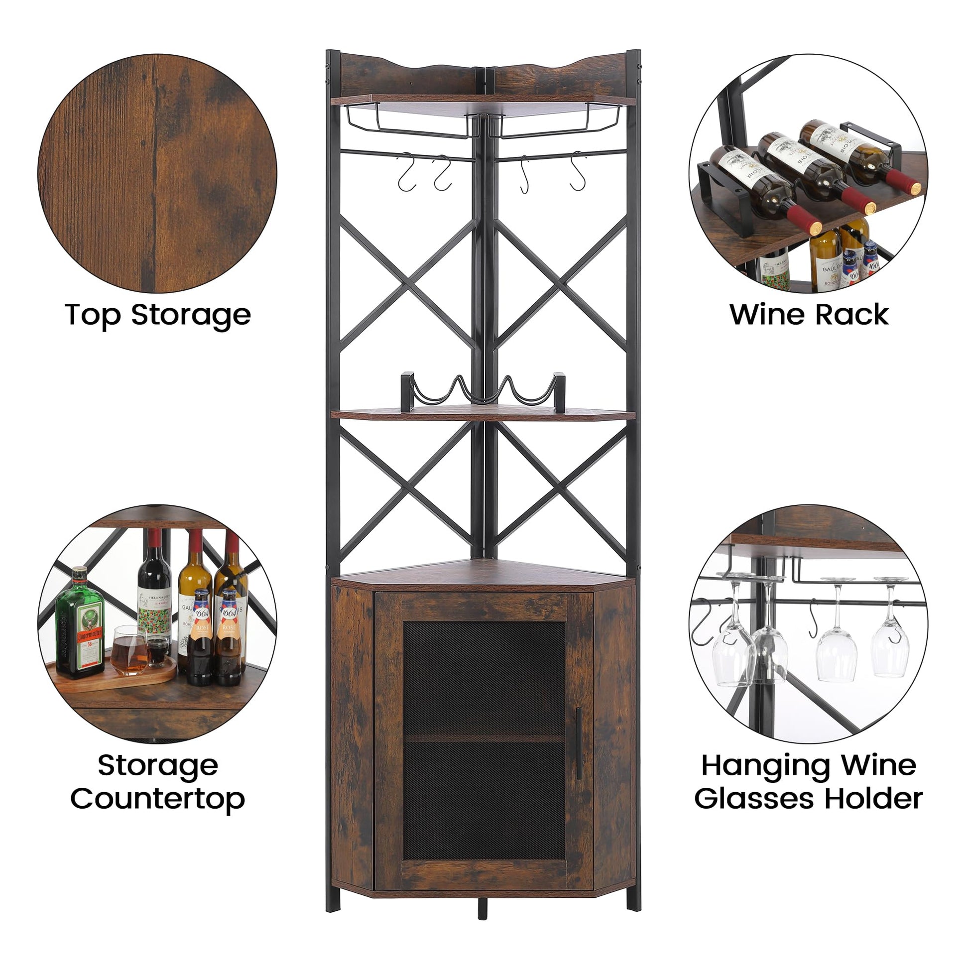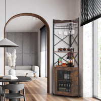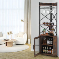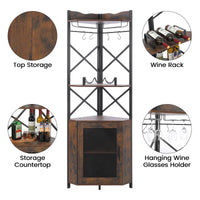 Garvee Corner Bar Cabinet, 5-Tiers Home Corner Wine Cabinet, Liquor Cabinet Bar with Glass & Wine Holder for Living Room/Kitchen