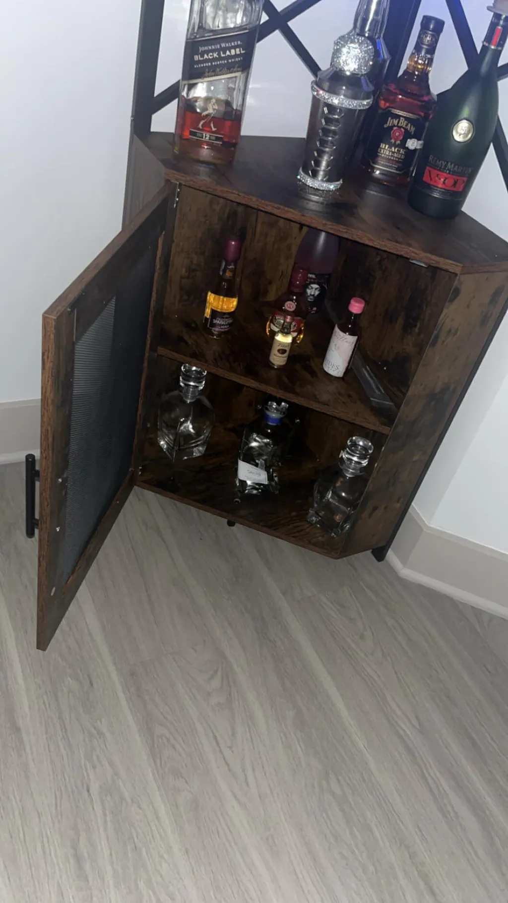 Garvee Corner Bar Cabinet, 5-Tiers Home Corner Wine Cabinet, Liquor Cabinet Bar with Glass & Wine Holder for Living Room/Kitchen