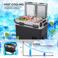 Rapid Cooling Technology: Thanks to the world's leading inverter compressor refrigeration technology, witness an empty fridge cool from 77°F to 32°F in just 20 minutes. There's no need for additional ice, ensuring your food stays fresh and drinks remain chilled, meeting the storage needs of truck drivers, boat owners, and campers alike.
