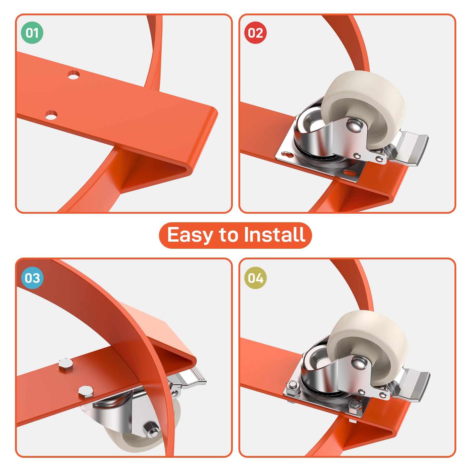 Garvee 55 Gallon Drum Dolly, Heavy Duty Drum Dolly with 4 Caster Wheels, 1000 LBS Capacity Trash Can Dolly Non-tipping Hand, Steel Frame Barrel Dolly Orange
